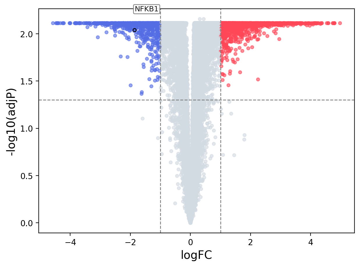 When the query gene is differentially changed in the dataset, a volcano/bar plot will be displayed.