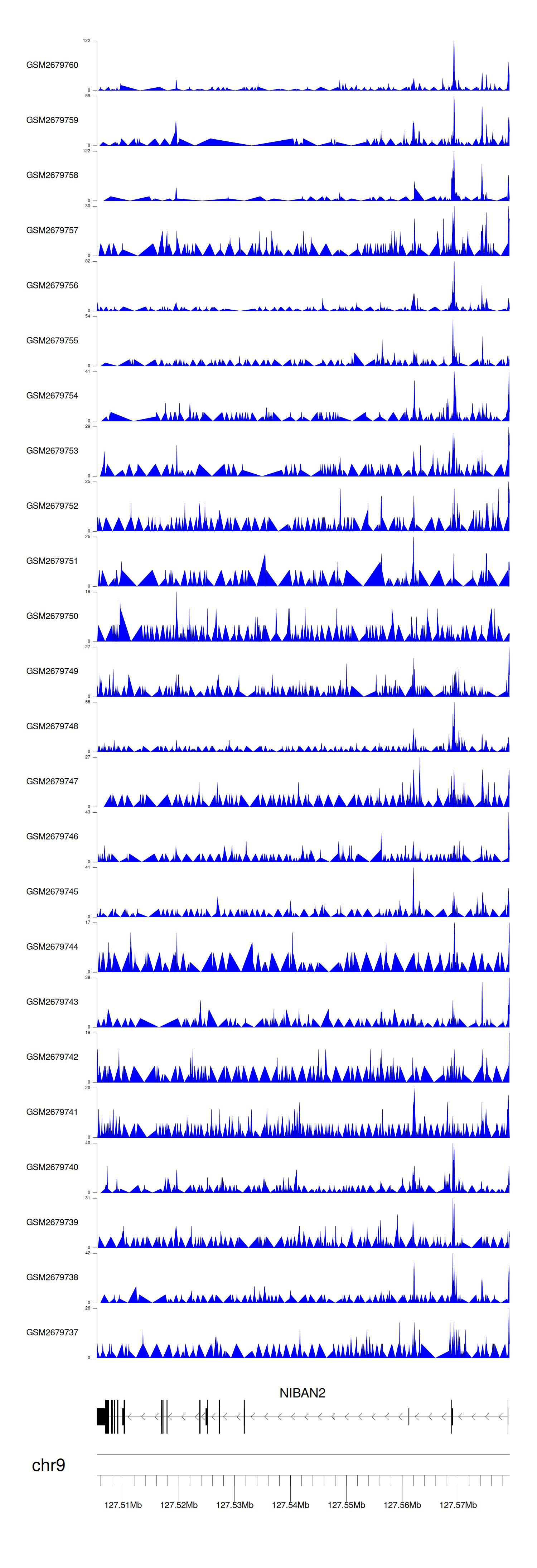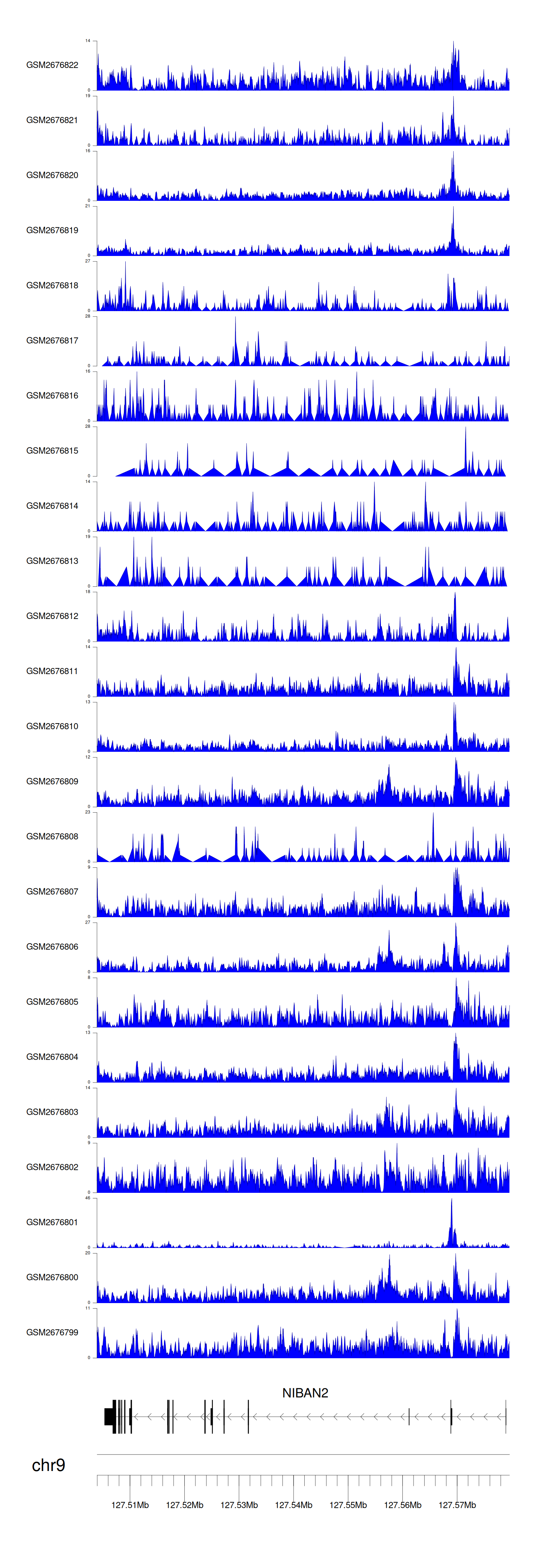 > Dataset: GSE100376 - NIBAN2 peak across samples