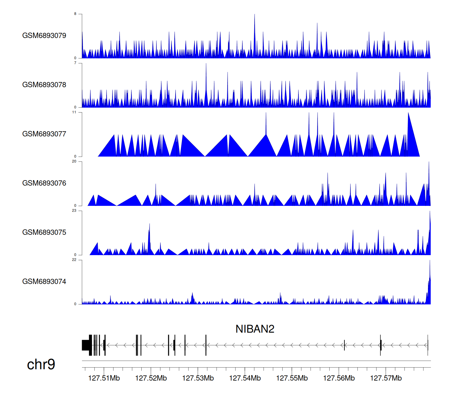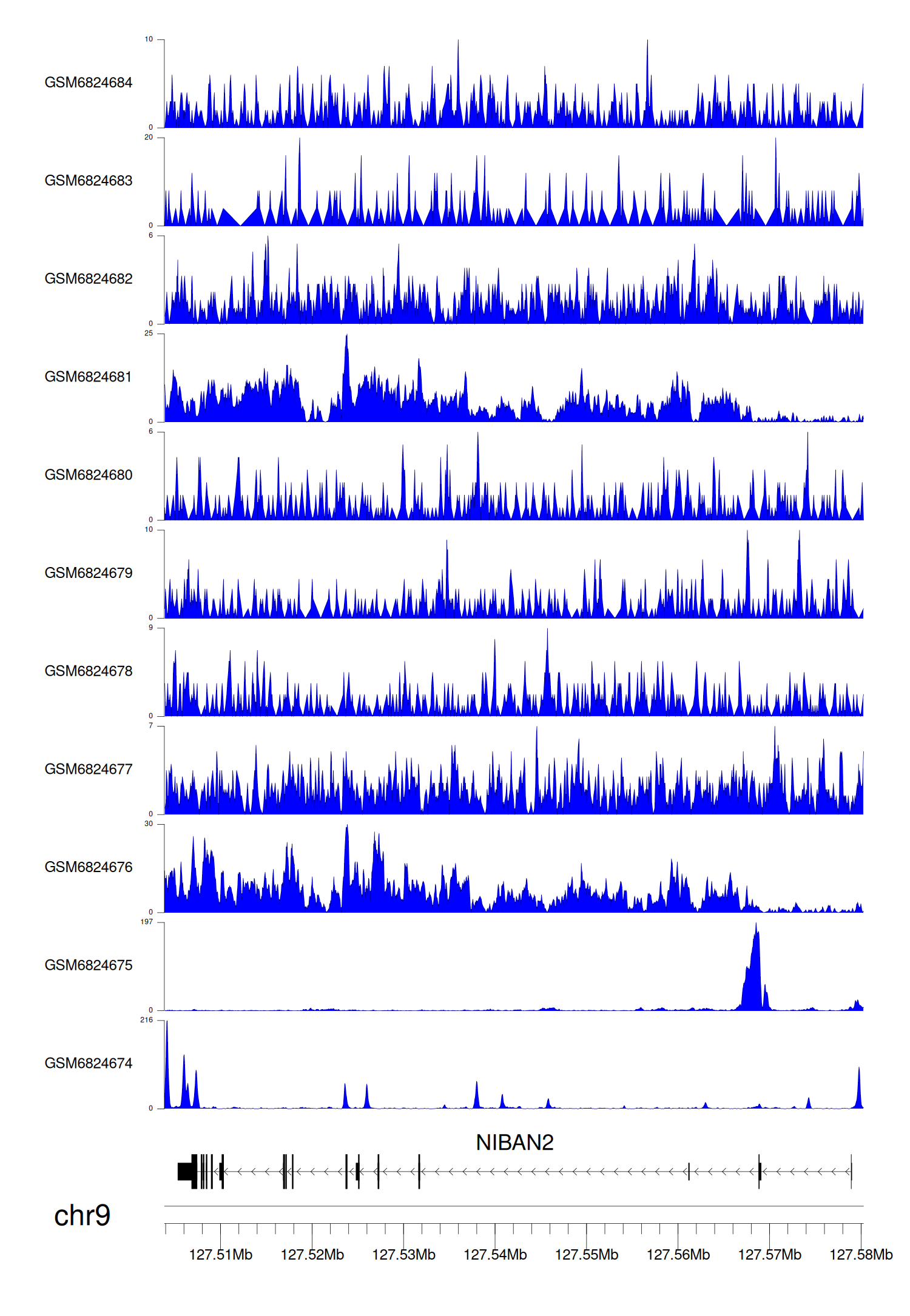 > Dataset: GSE165703 - NIBAN2 peak across samples