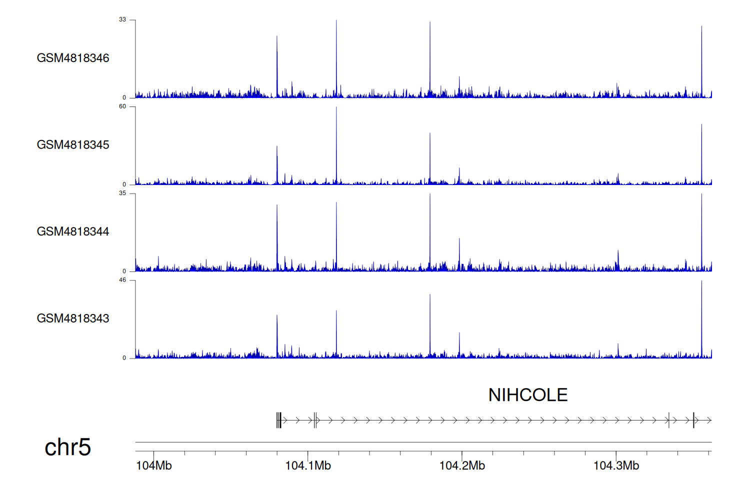 > Dataset: GSE131257 - NIHCOLE peak across samples