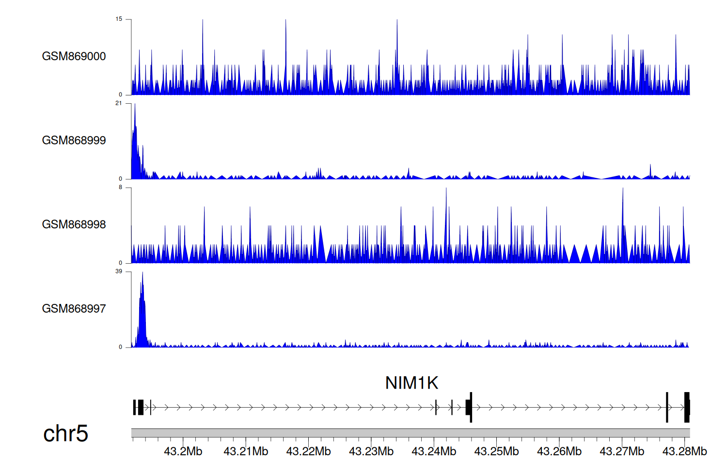 > Dataset: GSE68402 - NIM1K peak across samples