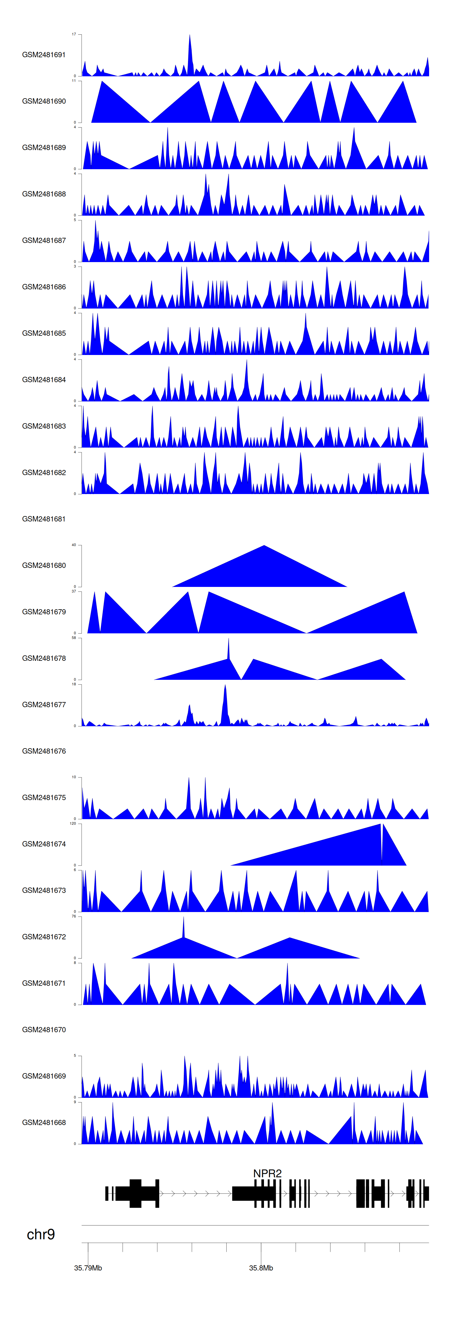 This gene encodes natriuretic peptide receptor B, one of two integral membrane receptors for natriuretic peptides. Both NPR1 and NPR2 contain five functional domains: an extracellular ligand-binding domain, a single membrane-spanning region, and intracellularly a protein kinase homology domain, a helical hinge region involved in oligomerization, and a carboxyl-terminal guanylyl cyclase catalytic domain. The protein is the primary receptor for C-type natriuretic peptide (CNP), which upon ligand binding exhibits greatly increased guanylyl cyclase activity. Mutations in this gene are the cause of acromesomelic dysplasia Maroteaux type. [provided by RefSeq, Jul 2008] |
