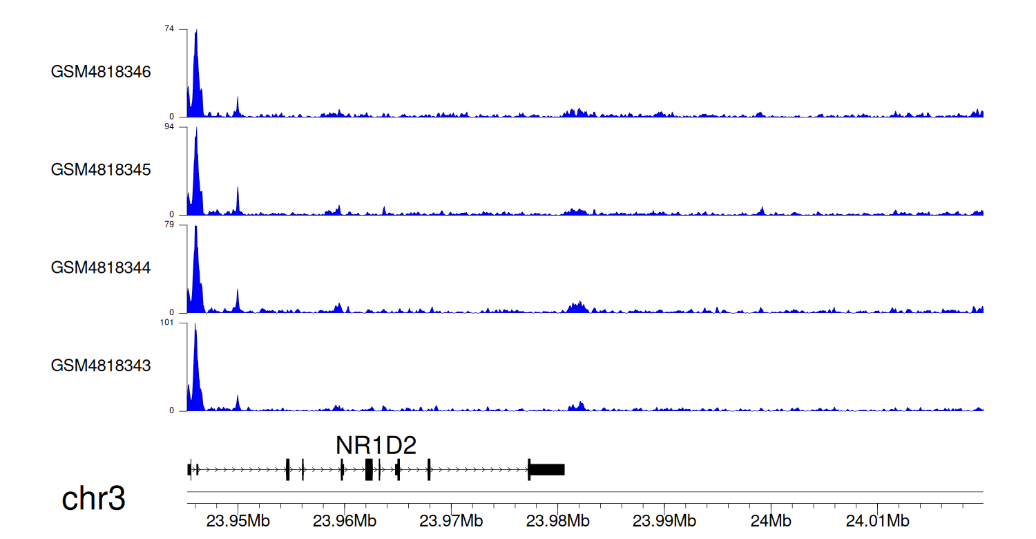 > Dataset: GSE270130 - NR1D2 peak across samples
