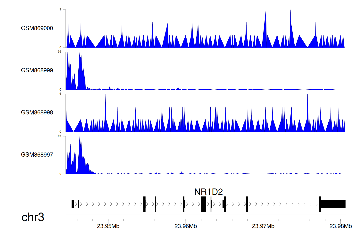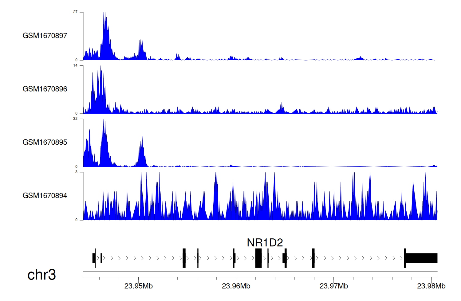 > Dataset: GSE68402 - NR1D2 peak across samples