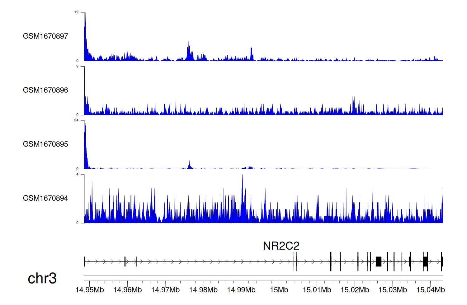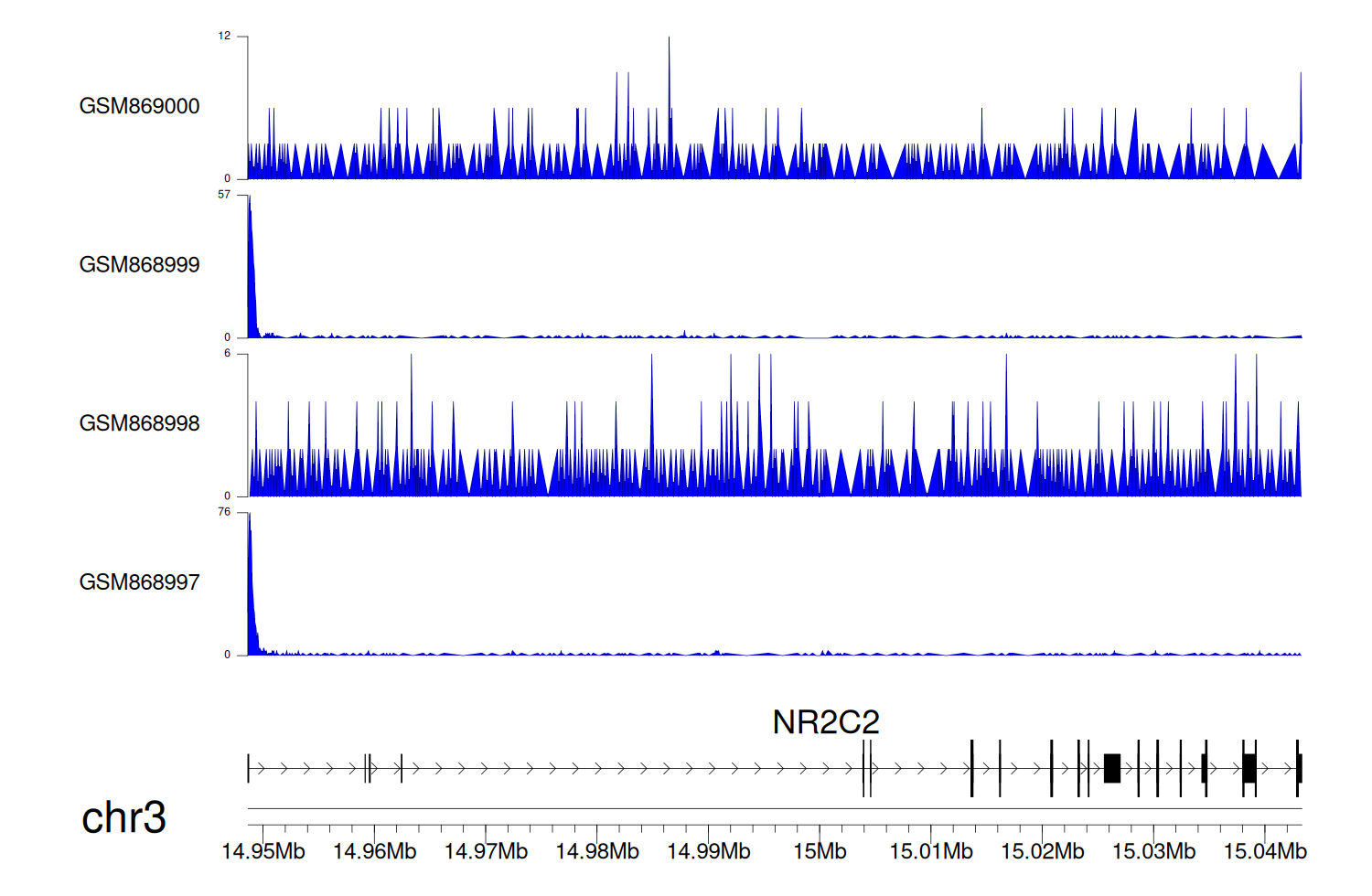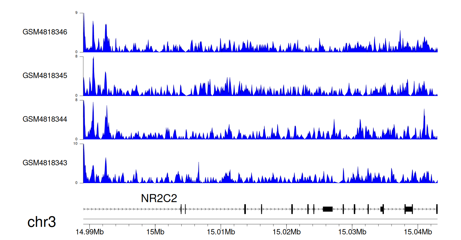 > Dataset: GSE68402 - NR2C2 peak across samples