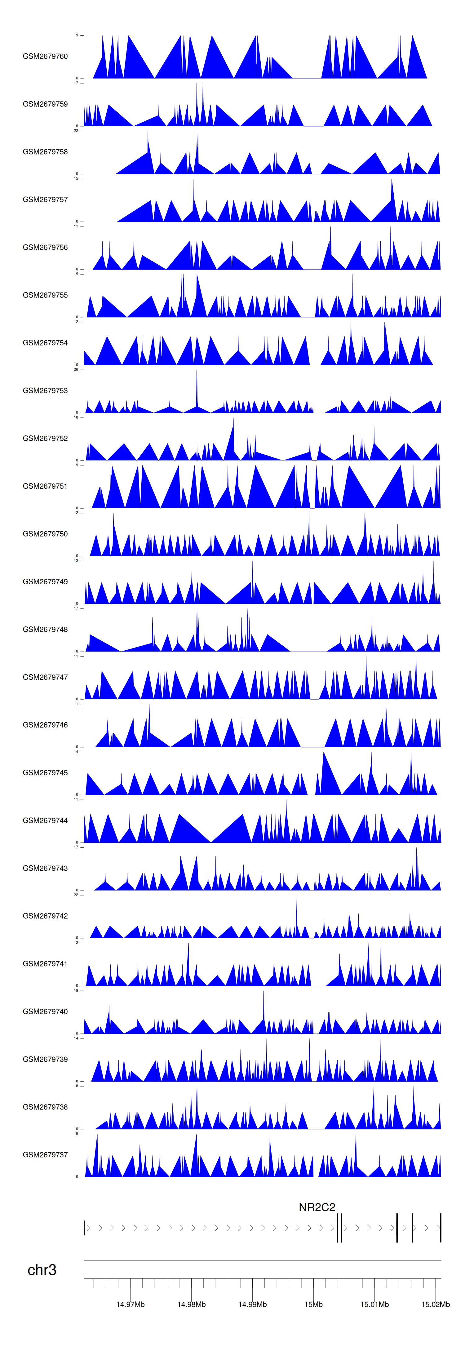 > Dataset: GSE100376 - NR2C2 peak across samples