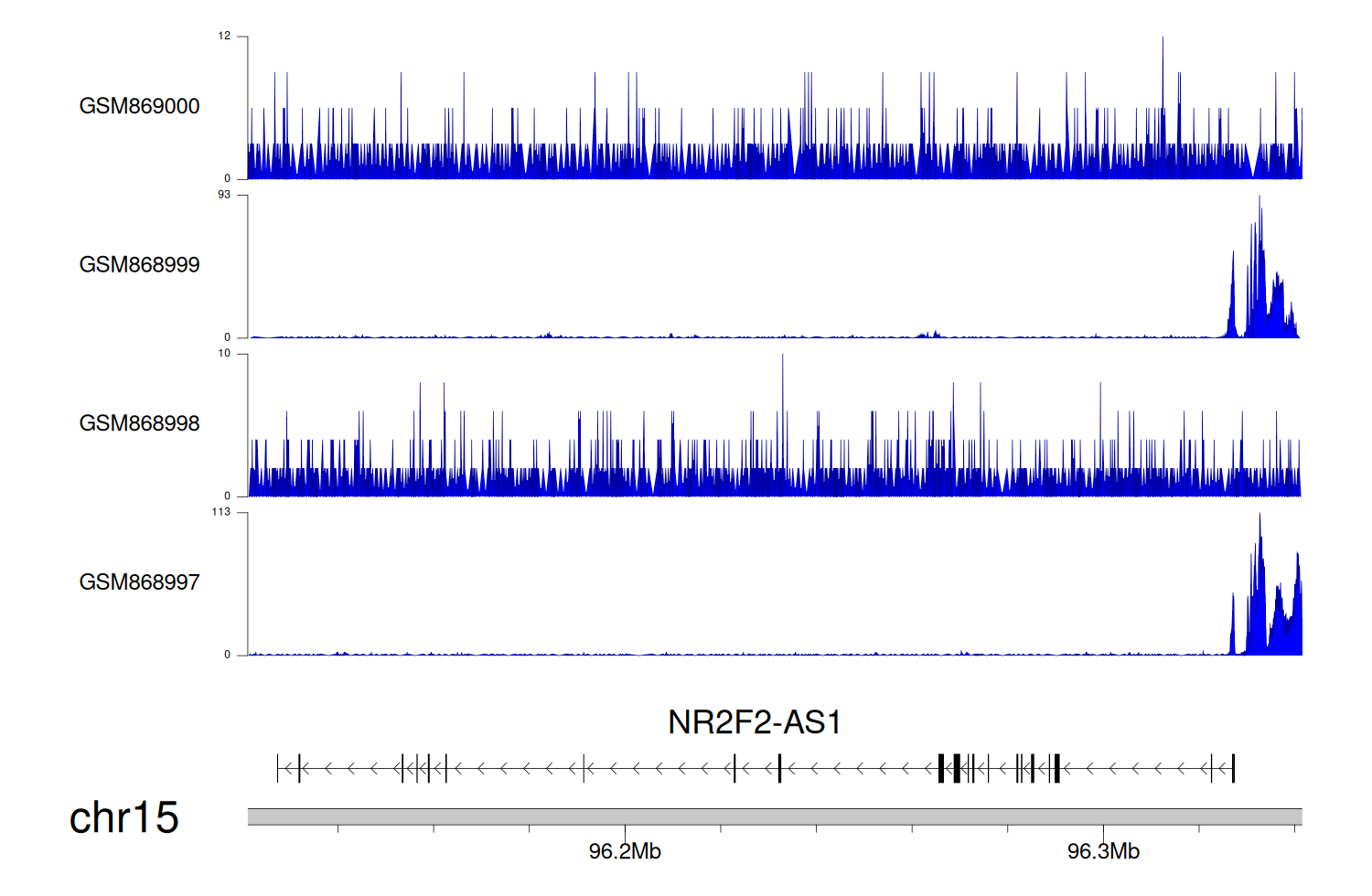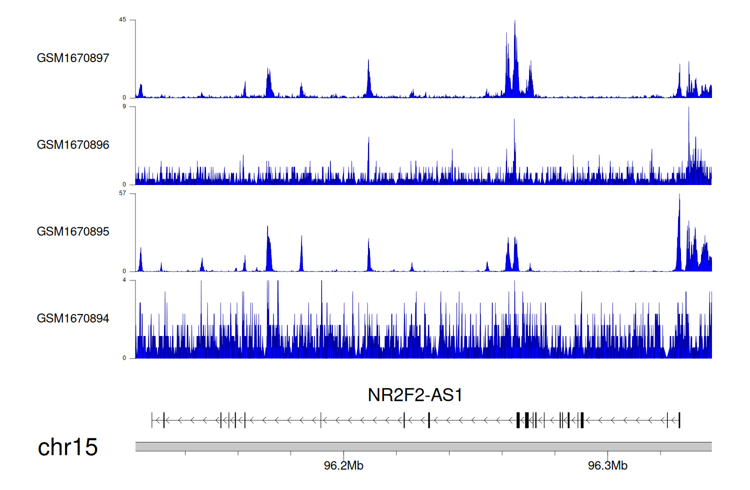> Dataset: GSE68402 - NR2F2-AS1 peak across samples