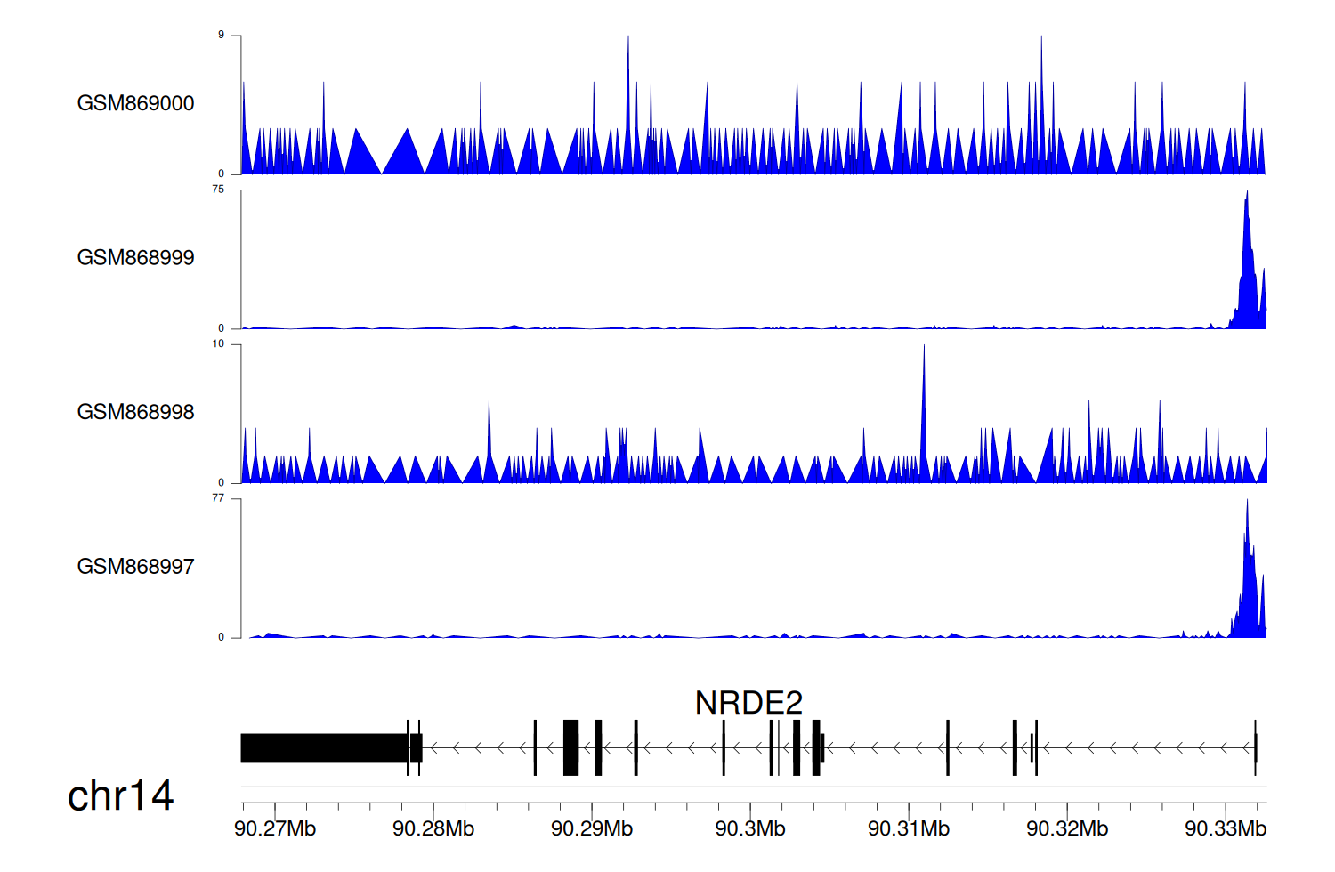 > Dataset: GSE68402 - NRDE2 peak across samples