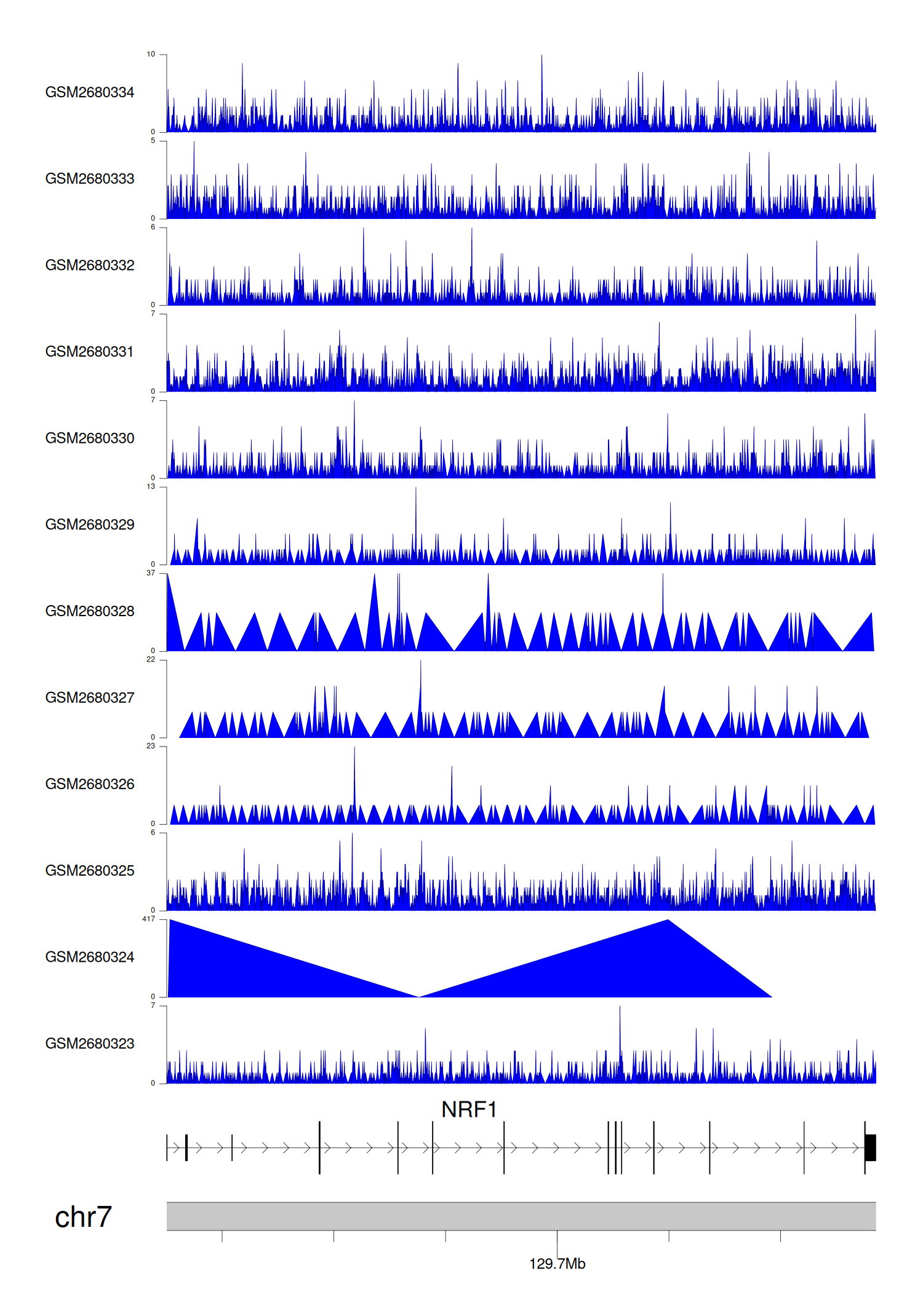 > Dataset: GSE68402 - NRF1 peak across samples
