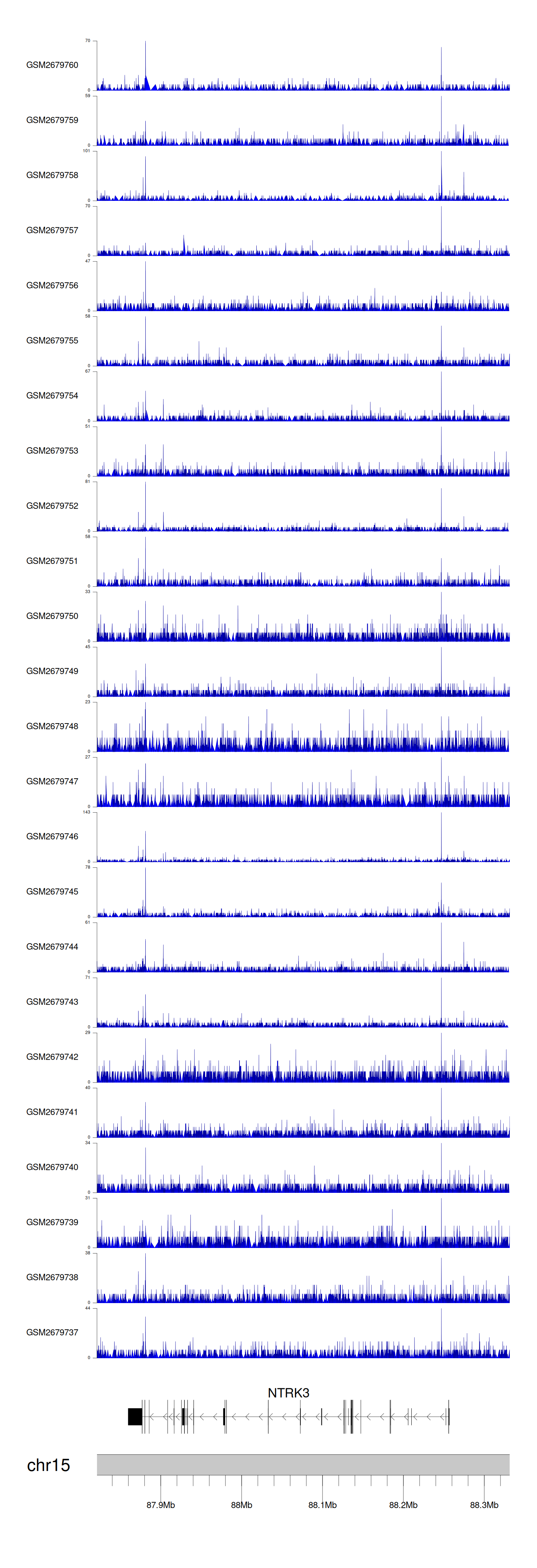 > Dataset: GSE100376 - NTRK3 peak across samples