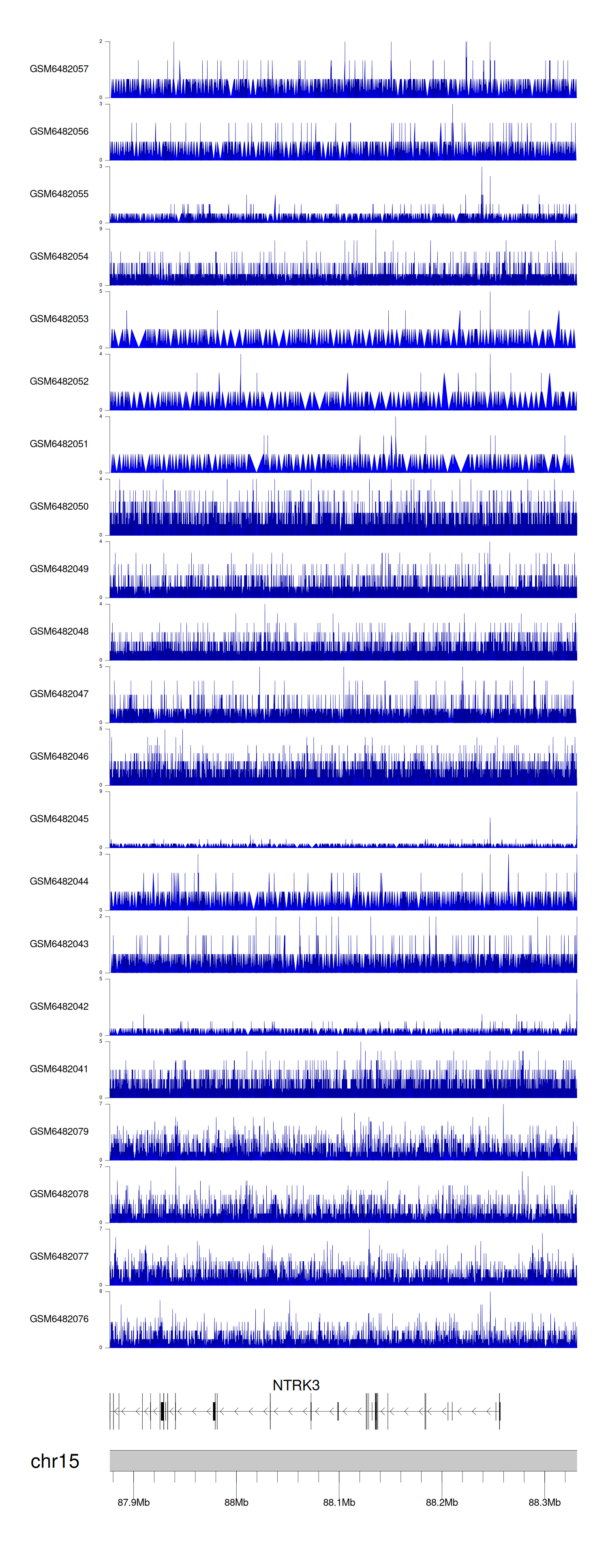 > Dataset: GSE165703 - NTRK3 peak across samples