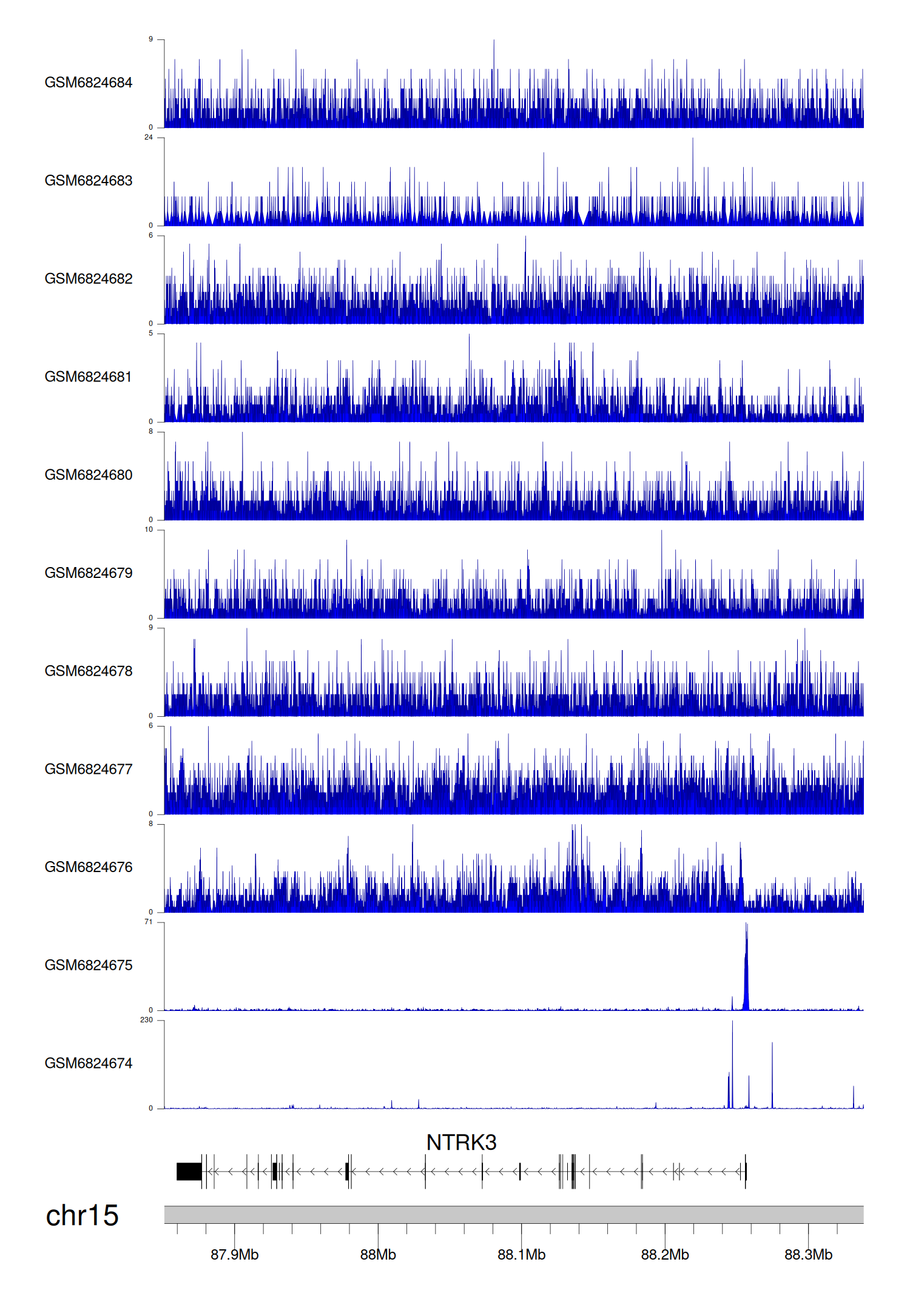 > Dataset: GSE221688 - NTRK3 peak across samples