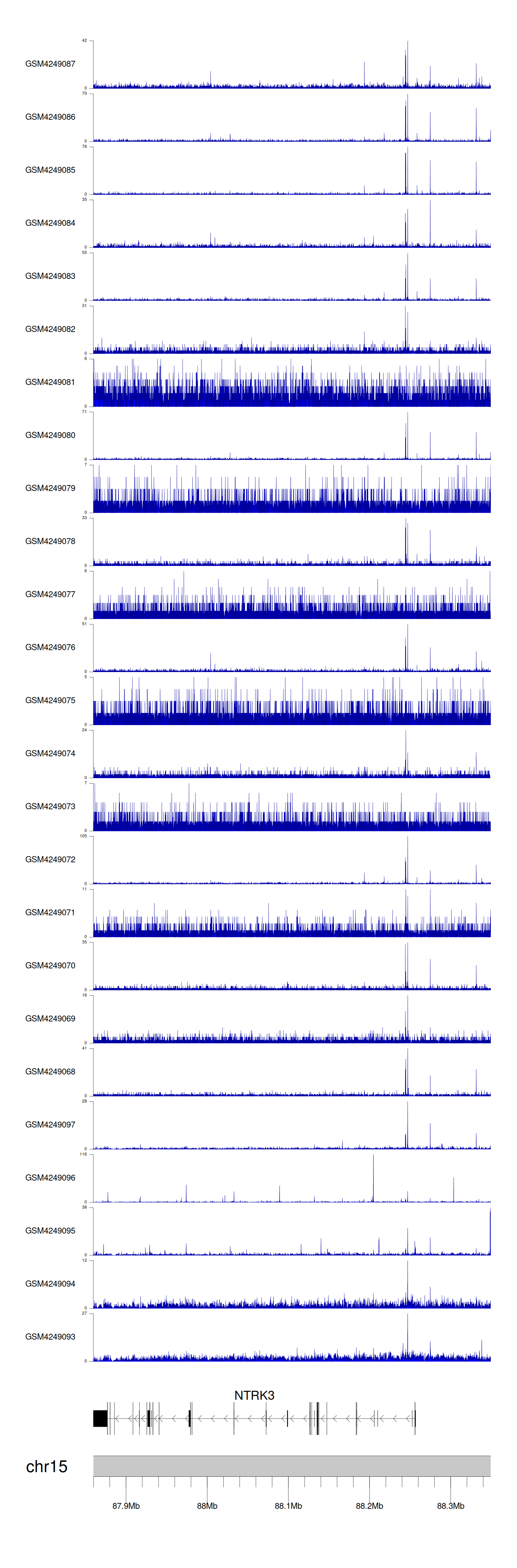 > Dataset: GSE143026 - NTRK3 peak across samples