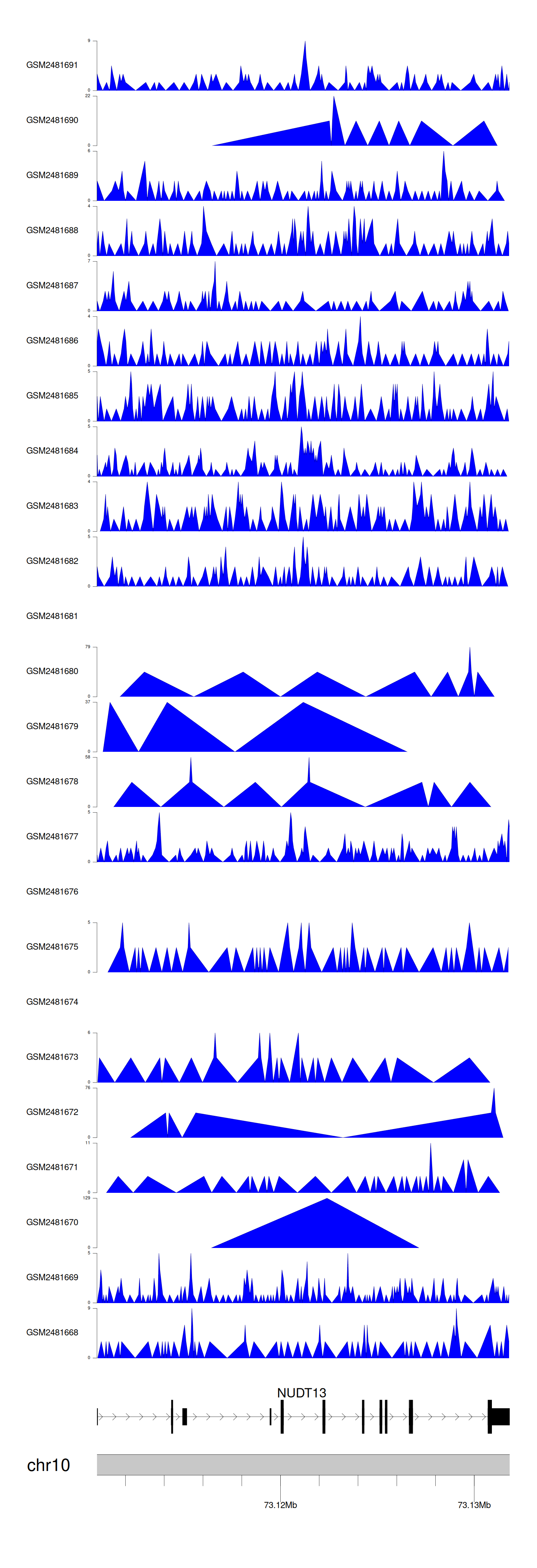 > Dataset: GSE94732 - NUDT13 peak across samples