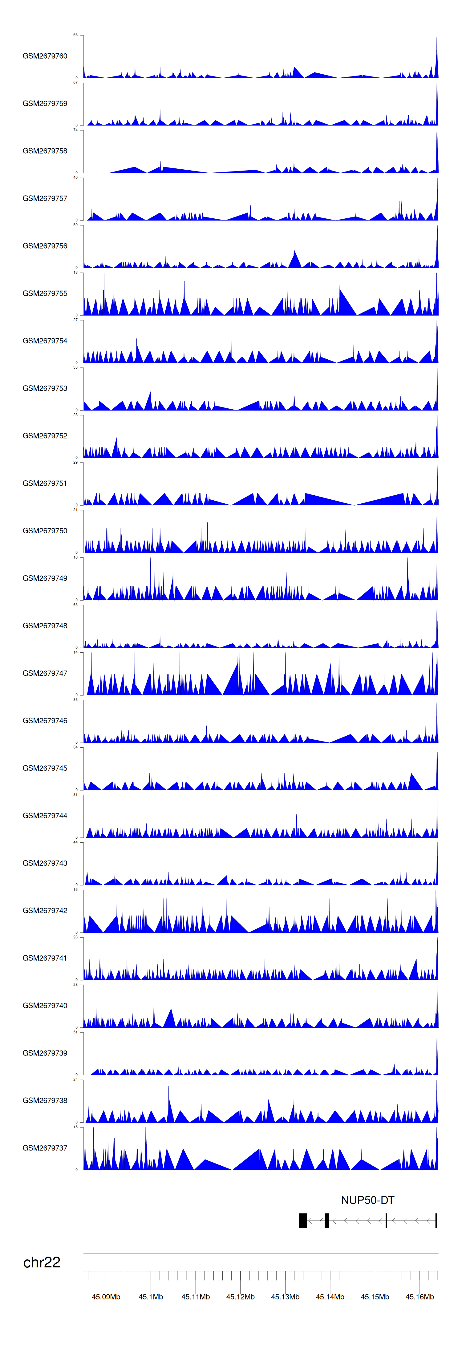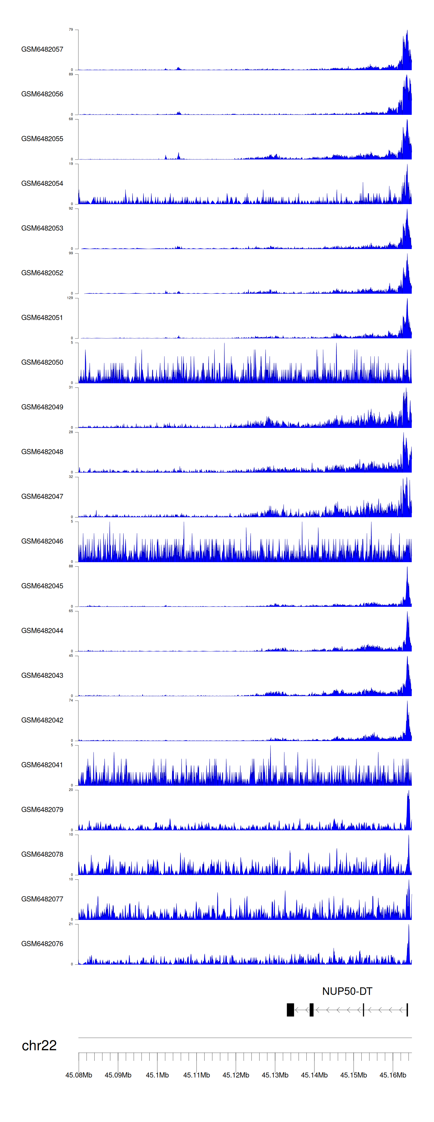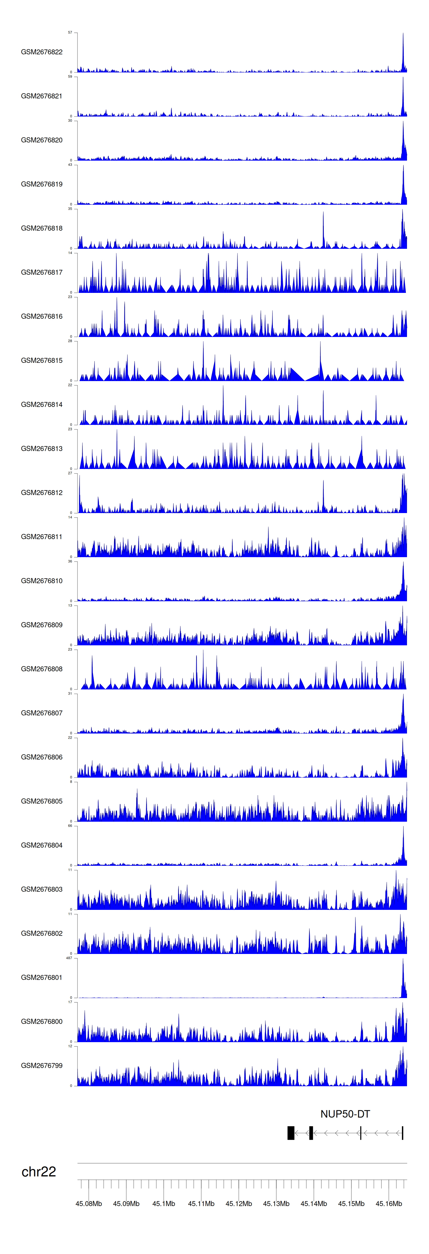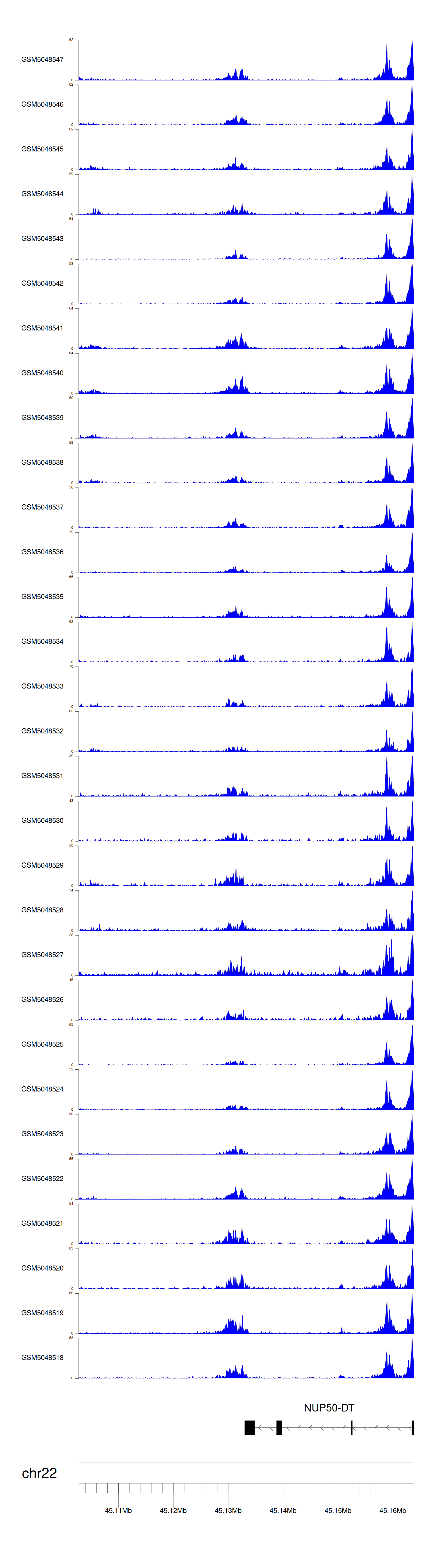 > Dataset: GSE165703 - NUP50-DT peak across samples
