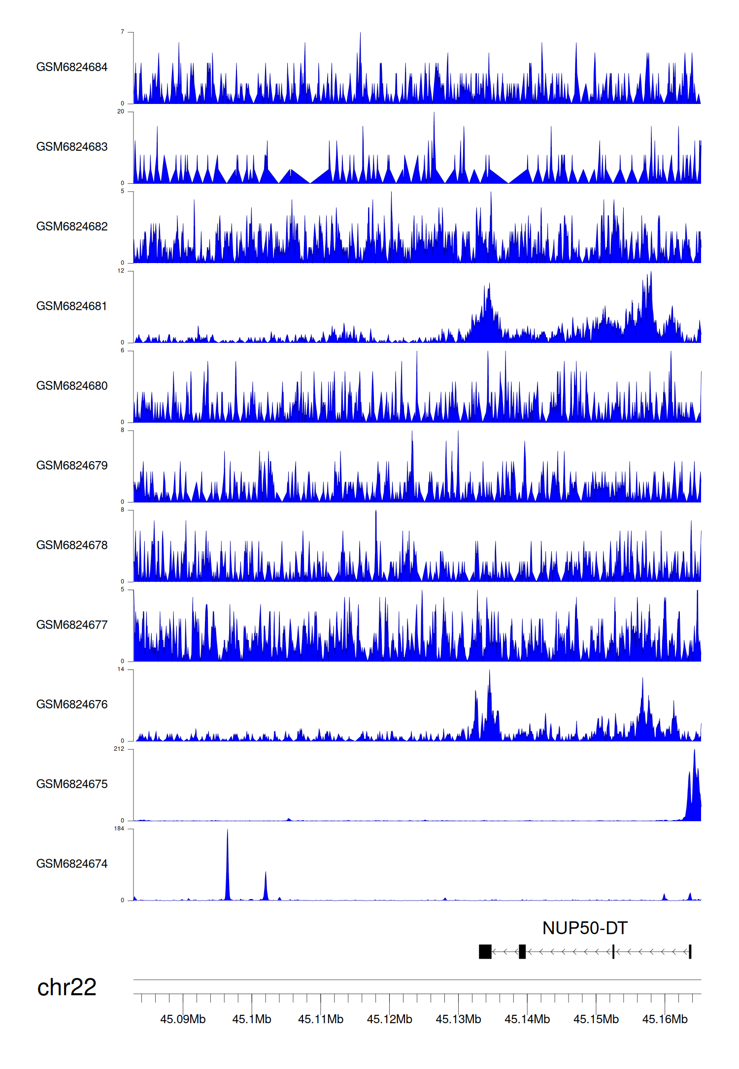 > Dataset: GSE211651 - NUP50-DT peak across samples