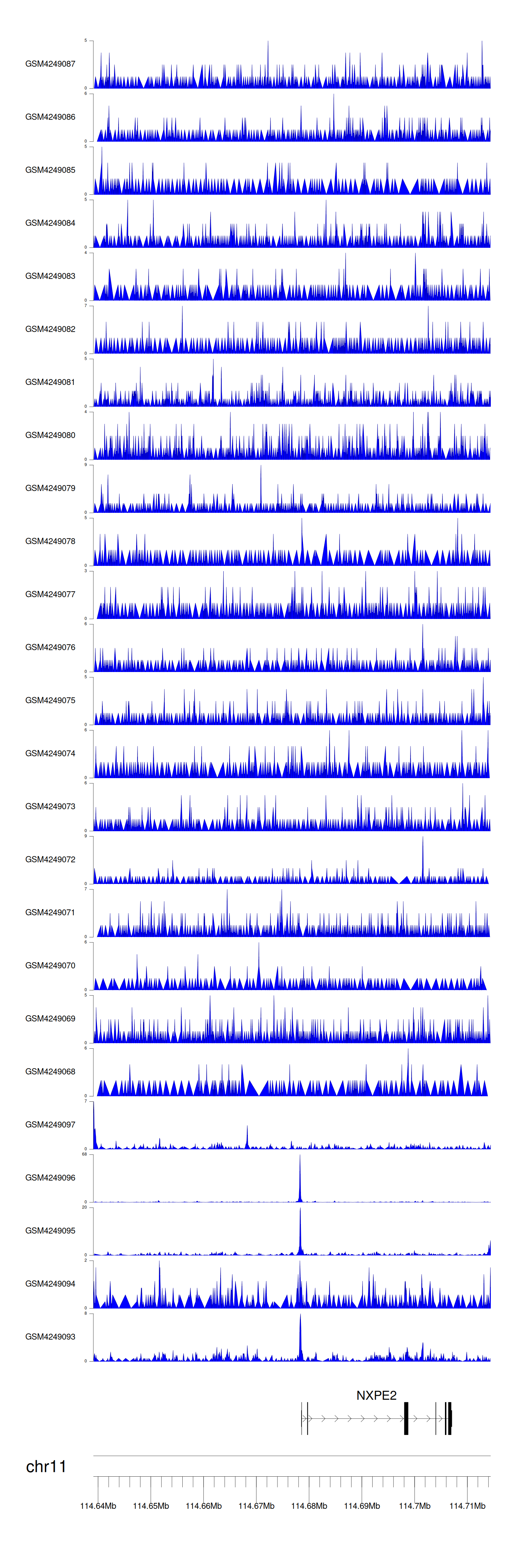 > Dataset: GSE143026 - NXPE2 peak across samples