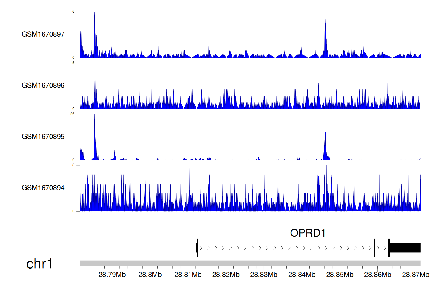 > Dataset: GSE68402 - OPRD1 peak across samples