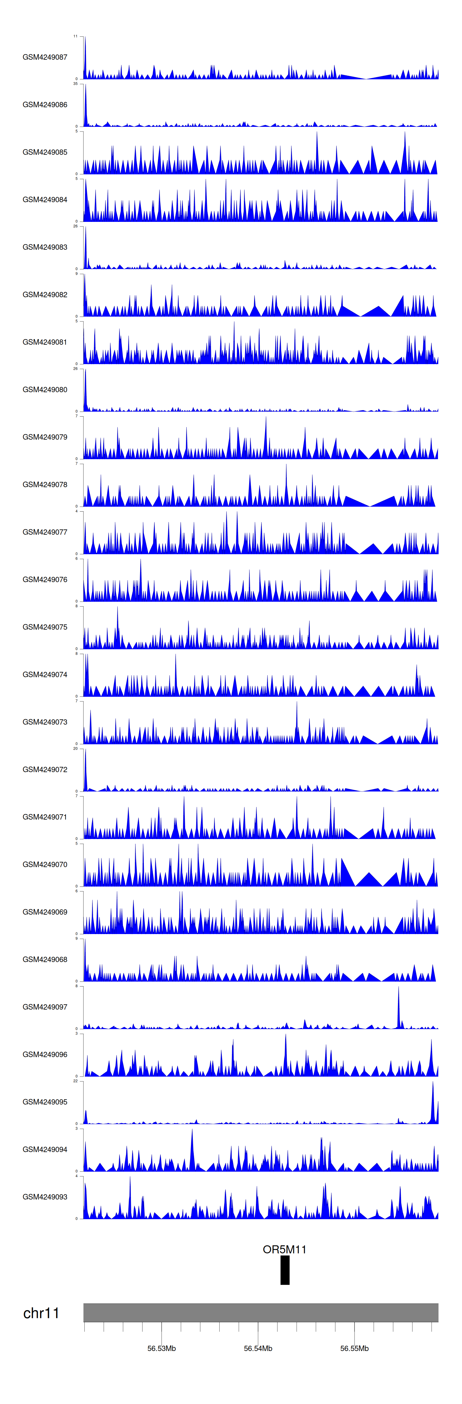 > Dataset: GSE143026 - OR5M11 peak across samples