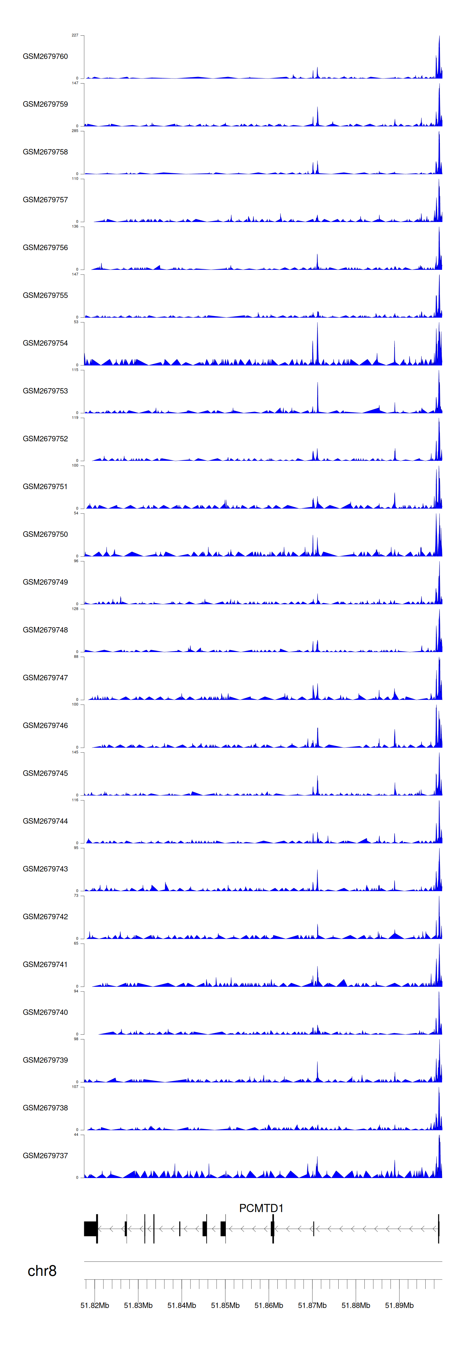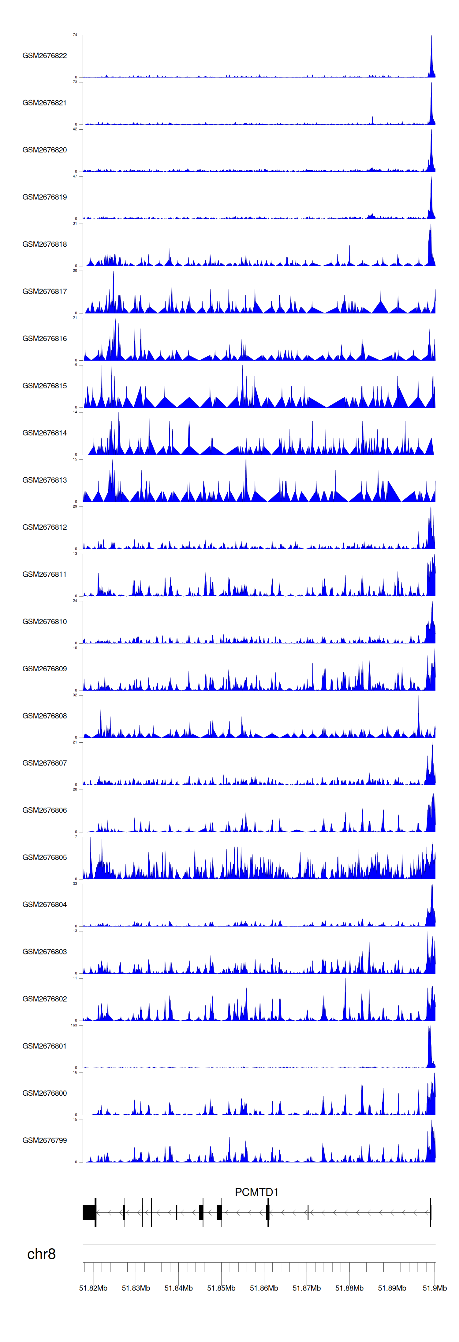 > Dataset: GSE100376 - PCMTD1 peak across samples
