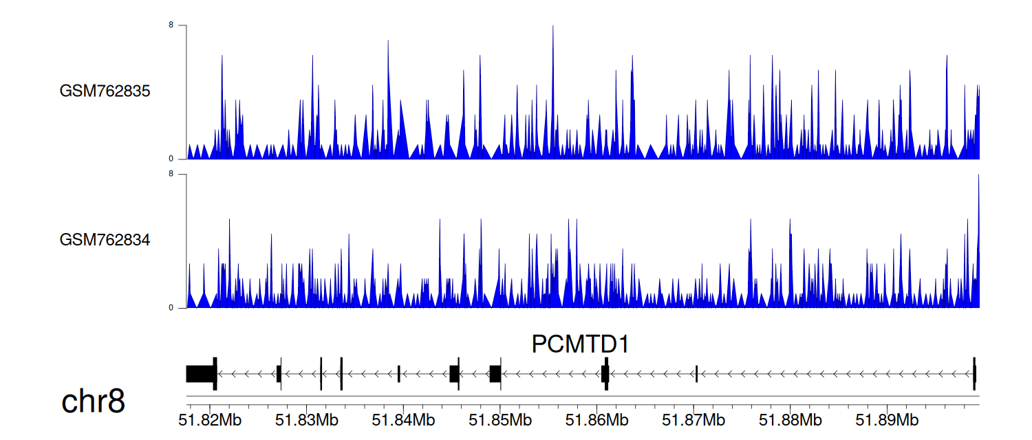 > Dataset: GSE30738 - PCMTD1 peak across samples