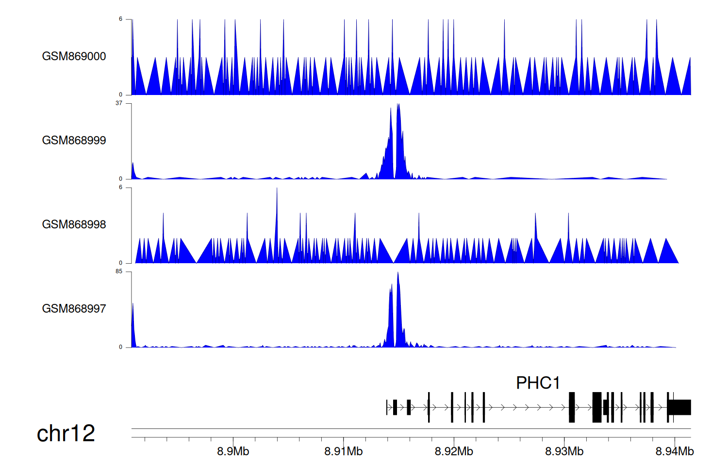 > Dataset: GSE68402 - PHC1 peak across samples