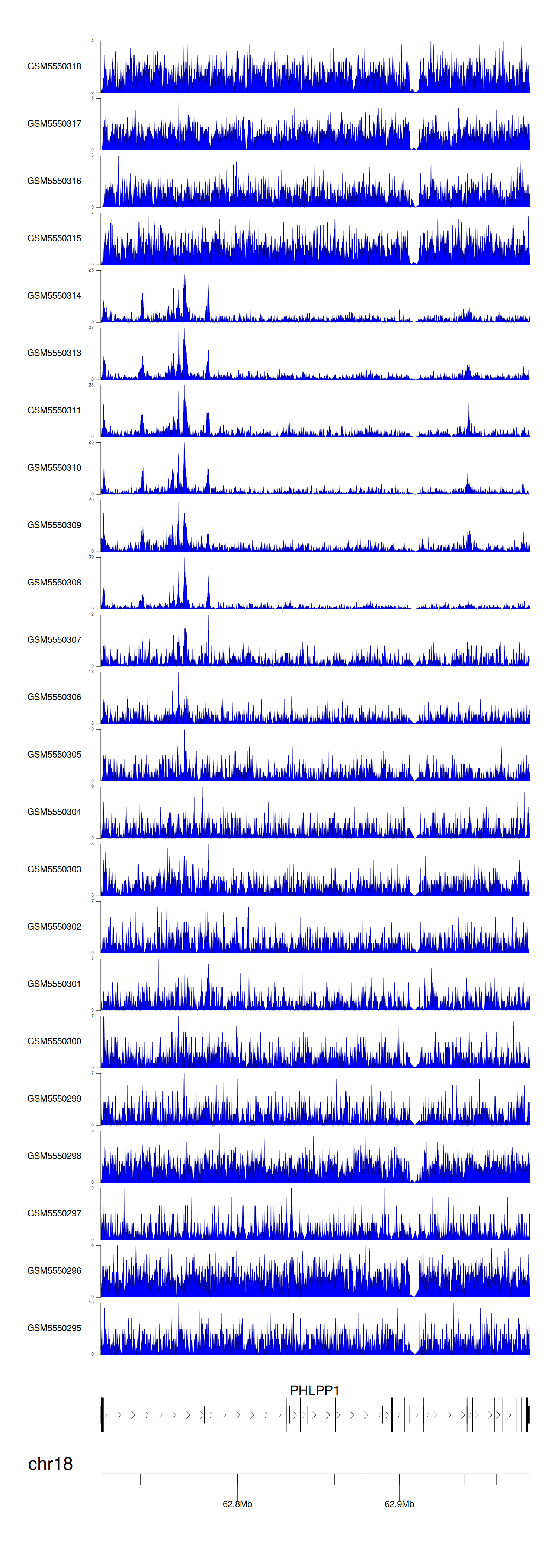 > Dataset: GSE143026 - PHLPP1 peak across samples