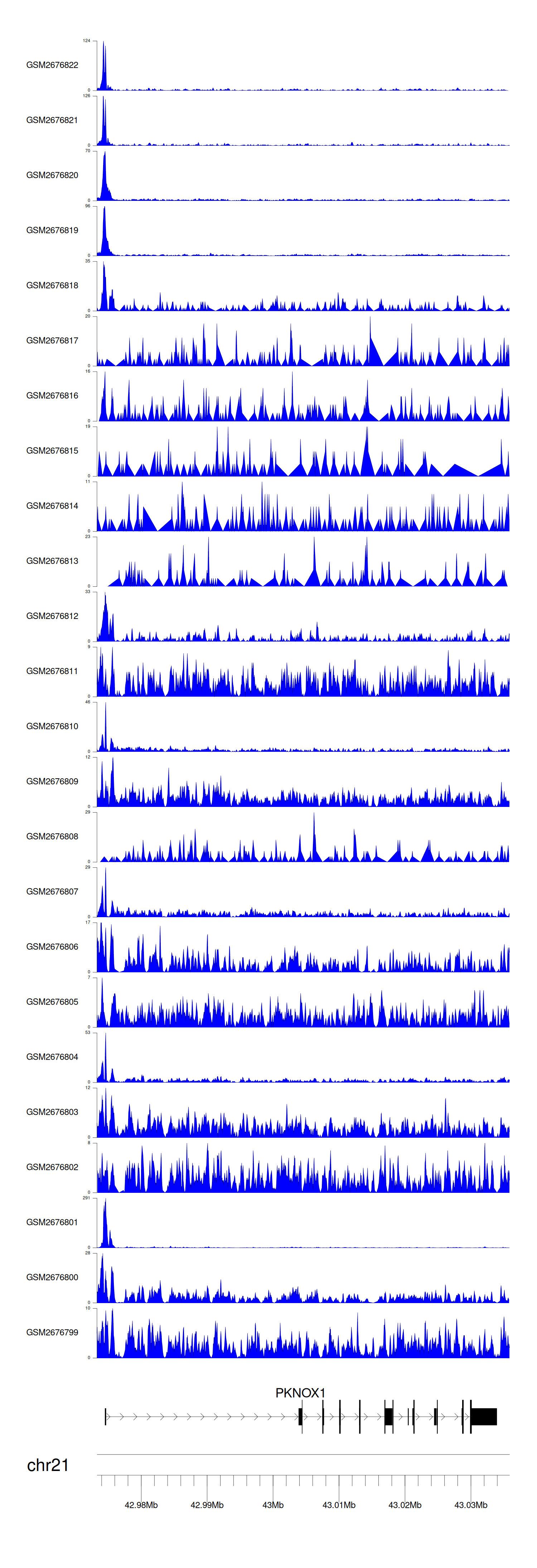 > Dataset: GSE100376 - PKNOX1 peak across samples