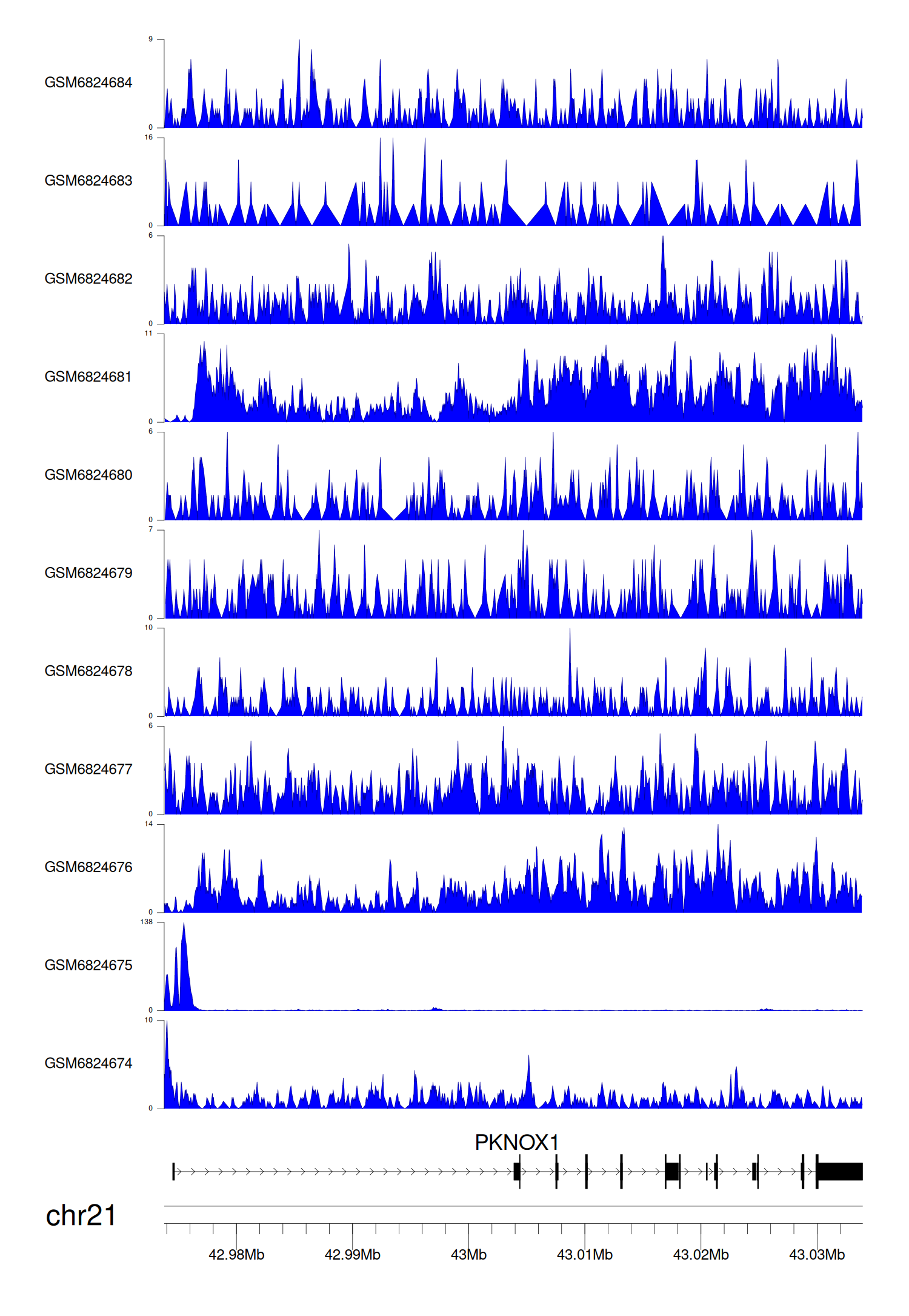 > Dataset: GSE165703 - PKNOX1 peak across samples