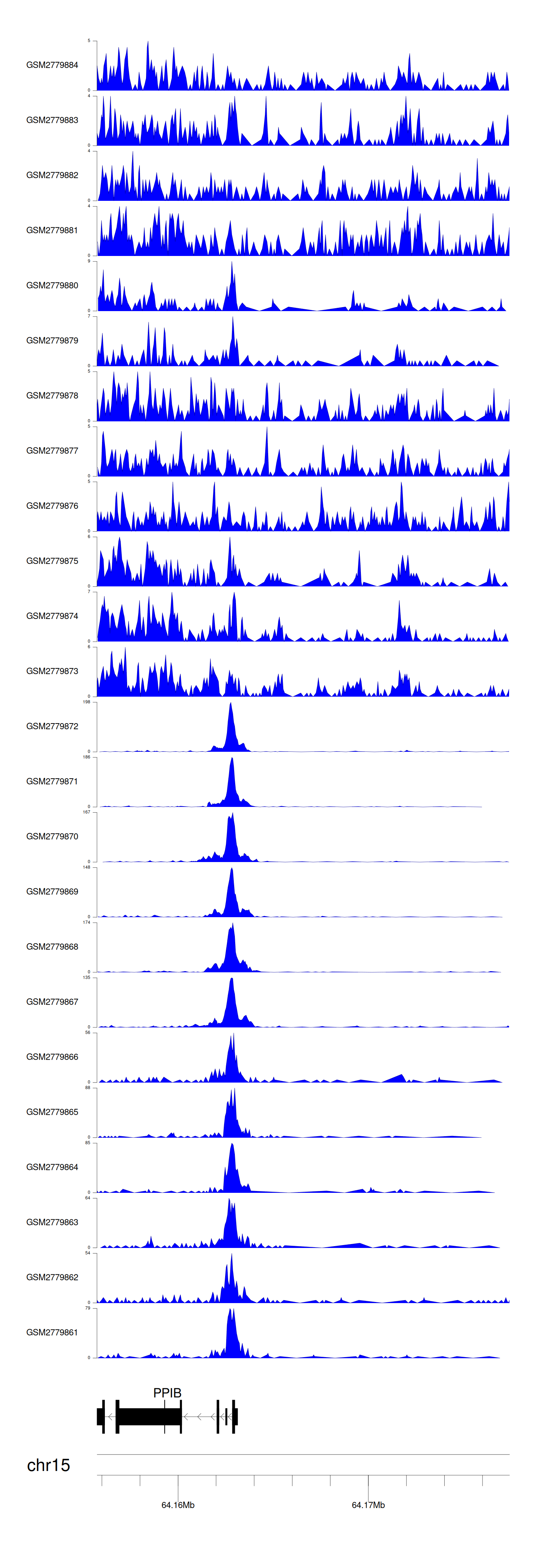 > Dataset: GSE103728 - PPIB peak across samples