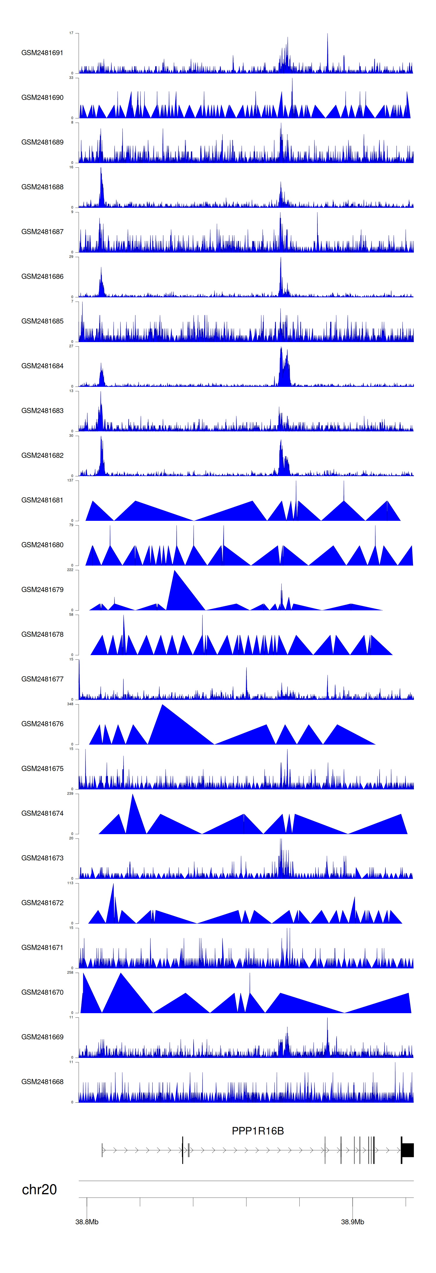 > Dataset: GSE94732 - PPP1R16B peak across samples