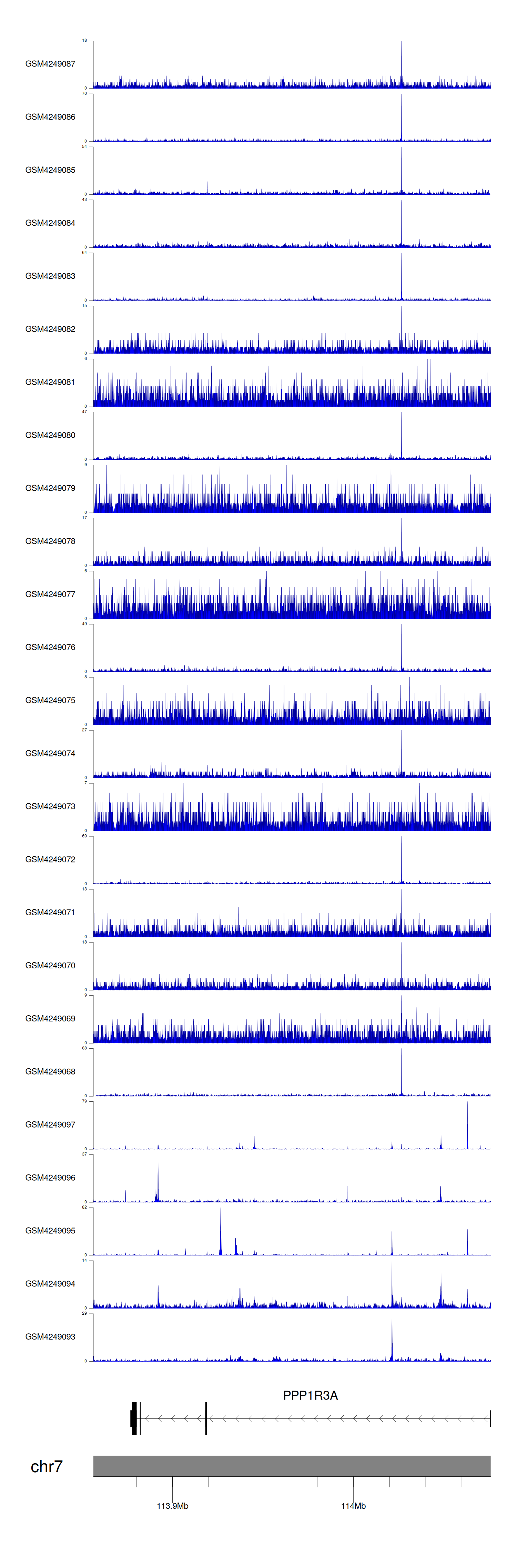> Dataset: GSE143026 - PPP1R3A peak across samples