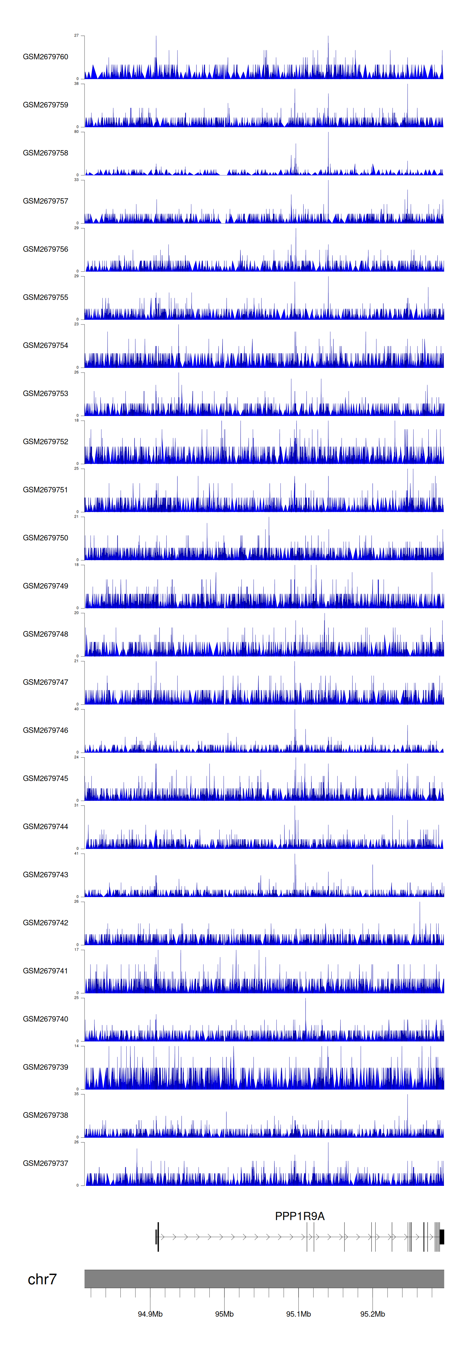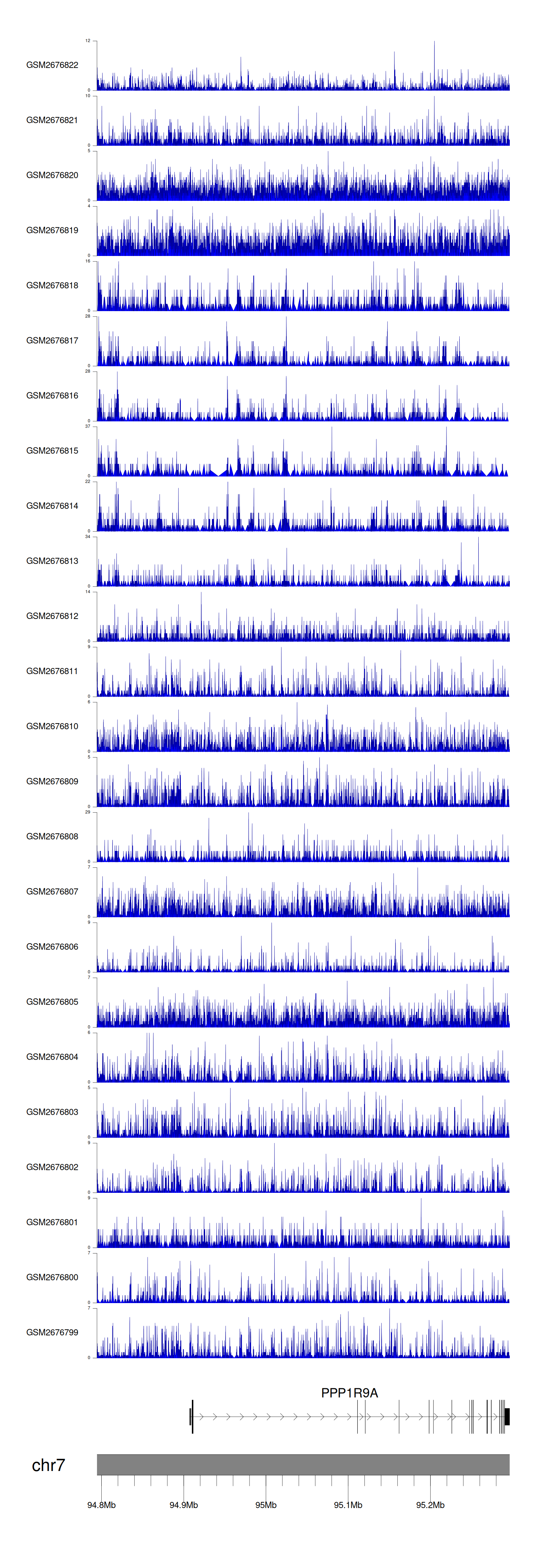 > Dataset: GSE100376 - PPP1R9A peak across samples