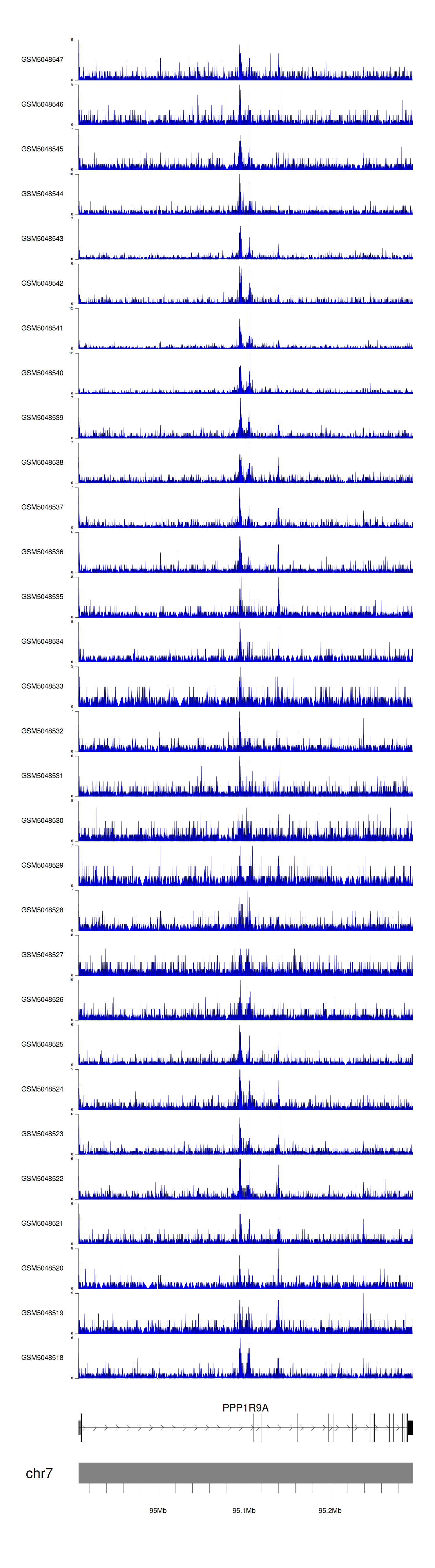 > Dataset: GSE30738 - PPP1R9A peak across samples