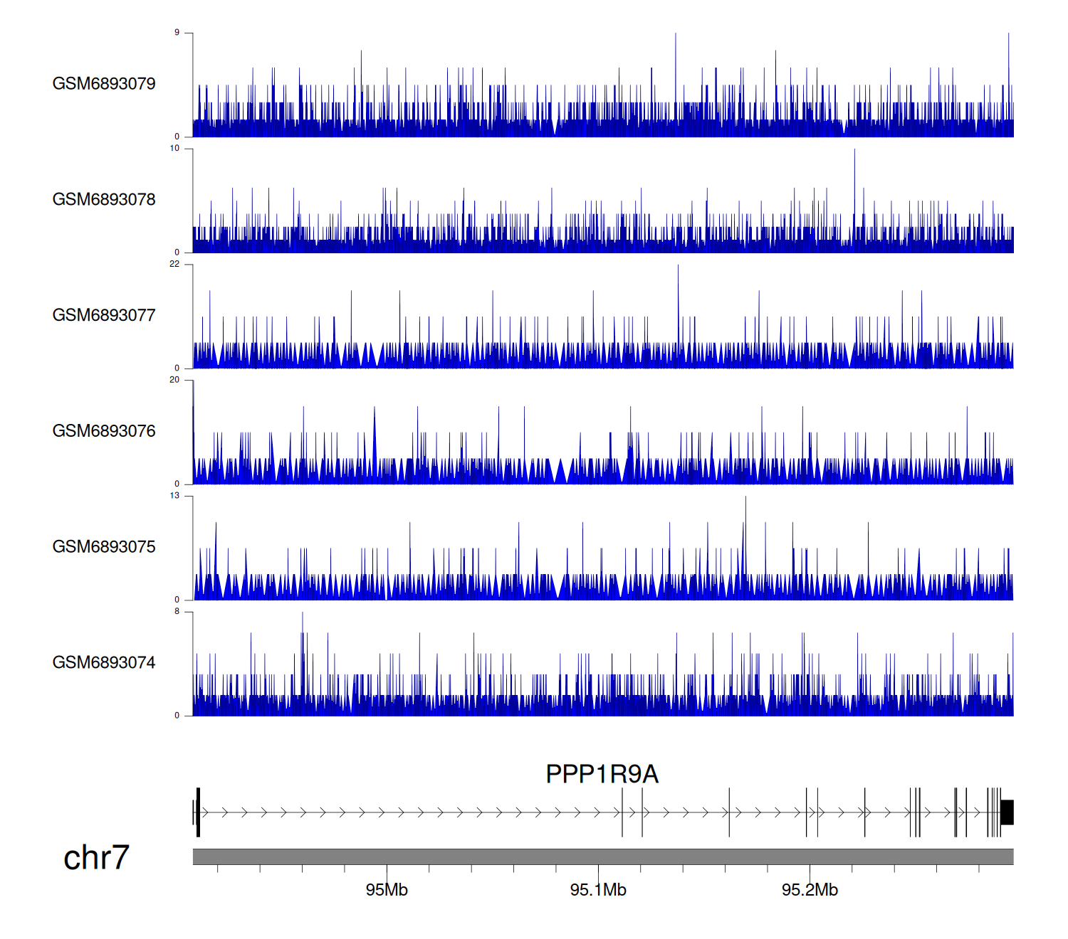 > Dataset: GSE211651 - PPP1R9A peak across samples
