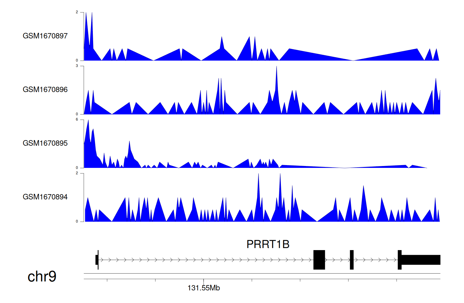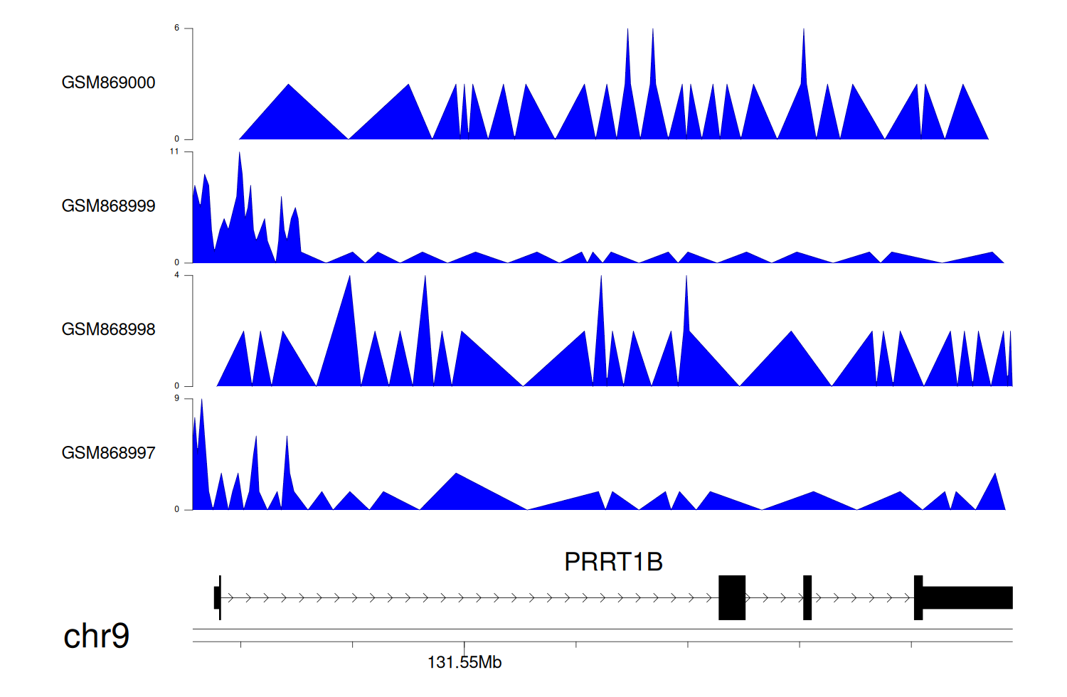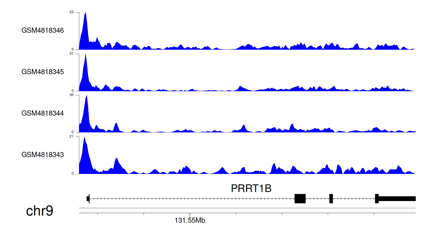 > Dataset: GSE131257 - PRRT1B peak across samples