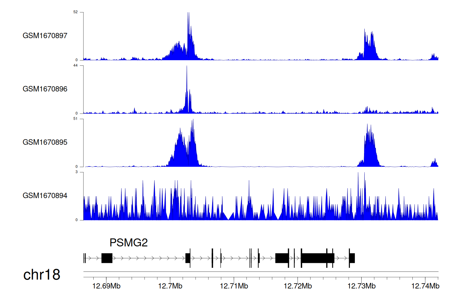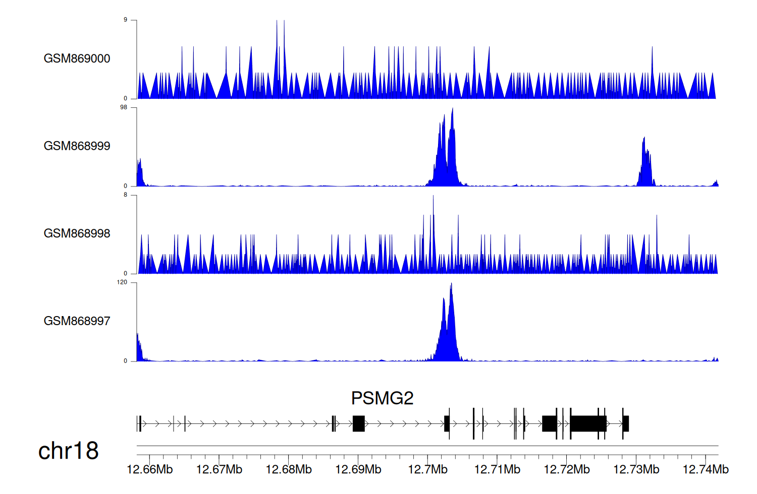 > Dataset: GSE68402 - PSMG2 peak across samples