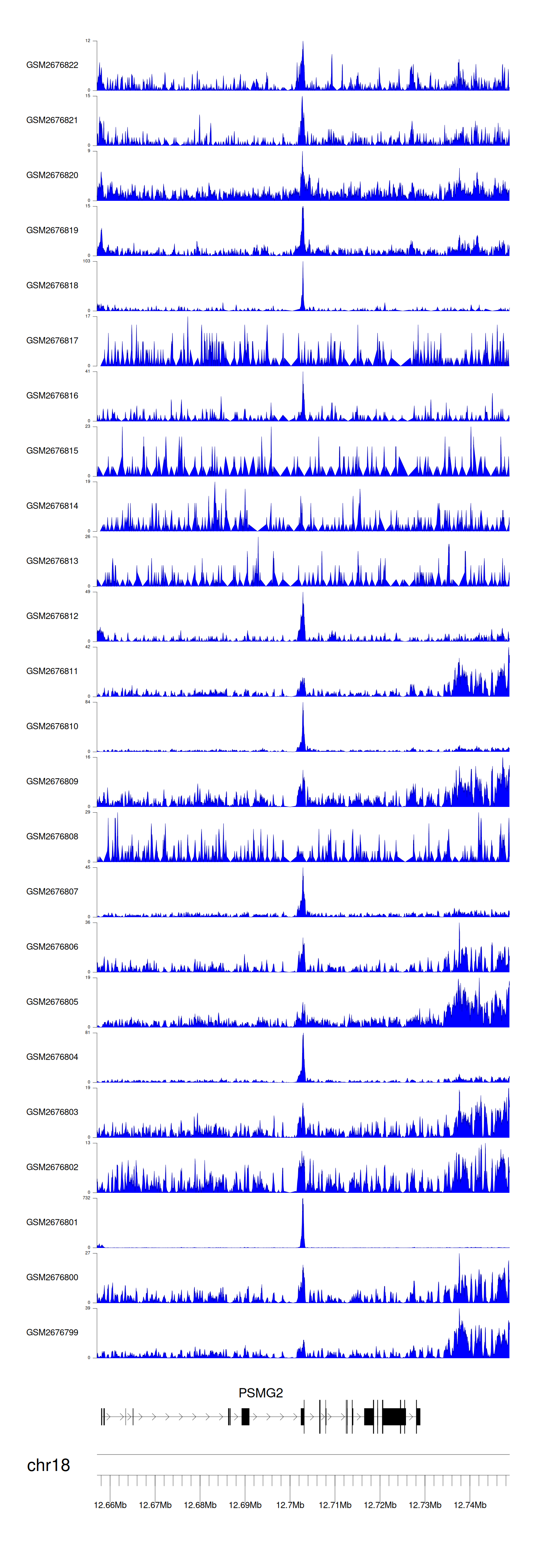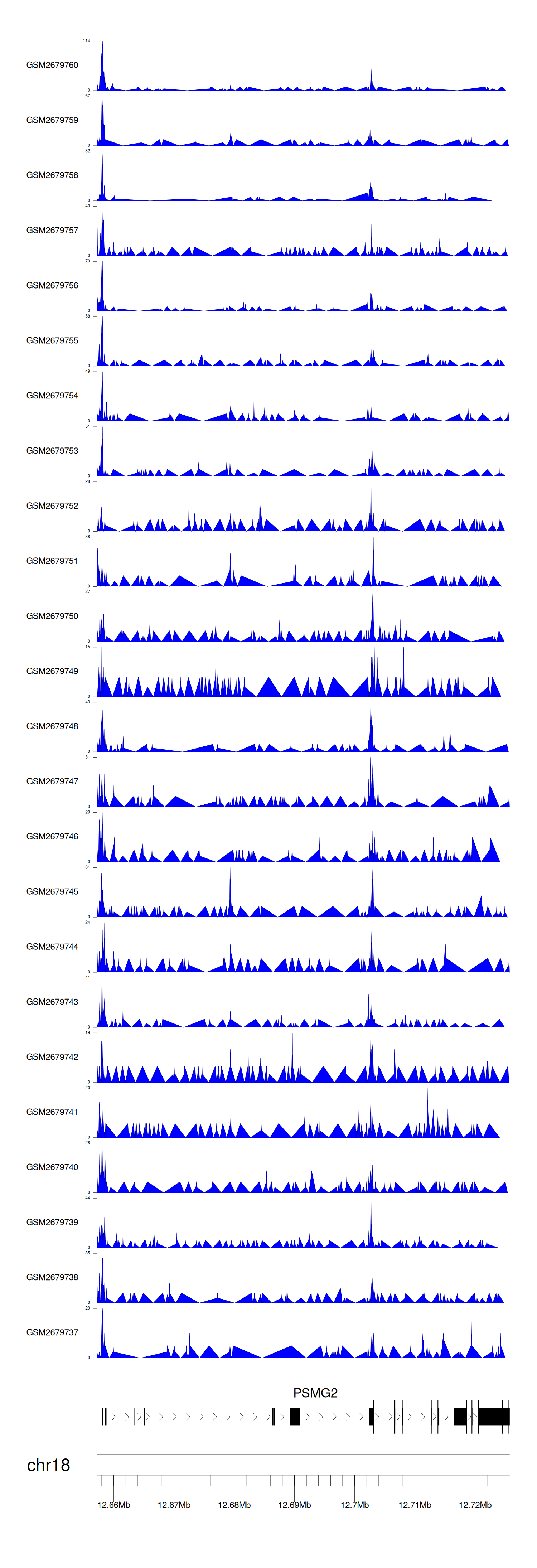 > Dataset: GSE100376 - PSMG2 peak across samples