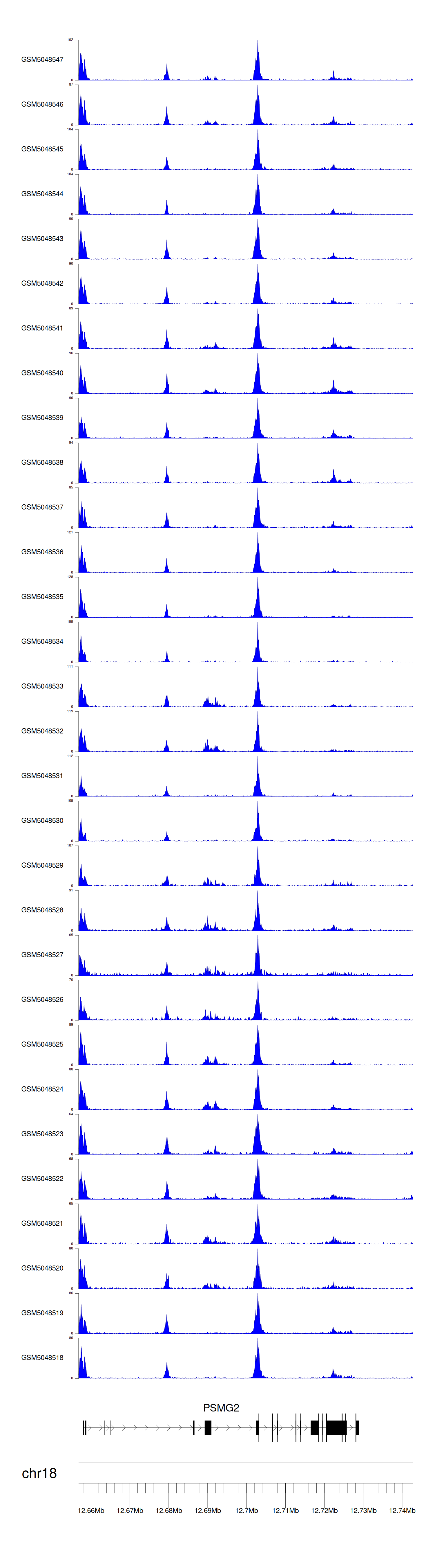 > Dataset: GSE30738 - PSMG2 peak across samples