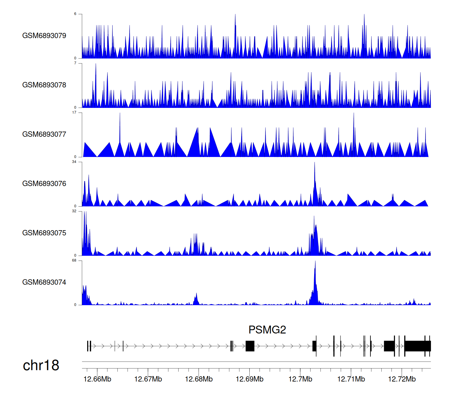 > Dataset: GSE220859 - PSMG2 peak across samples