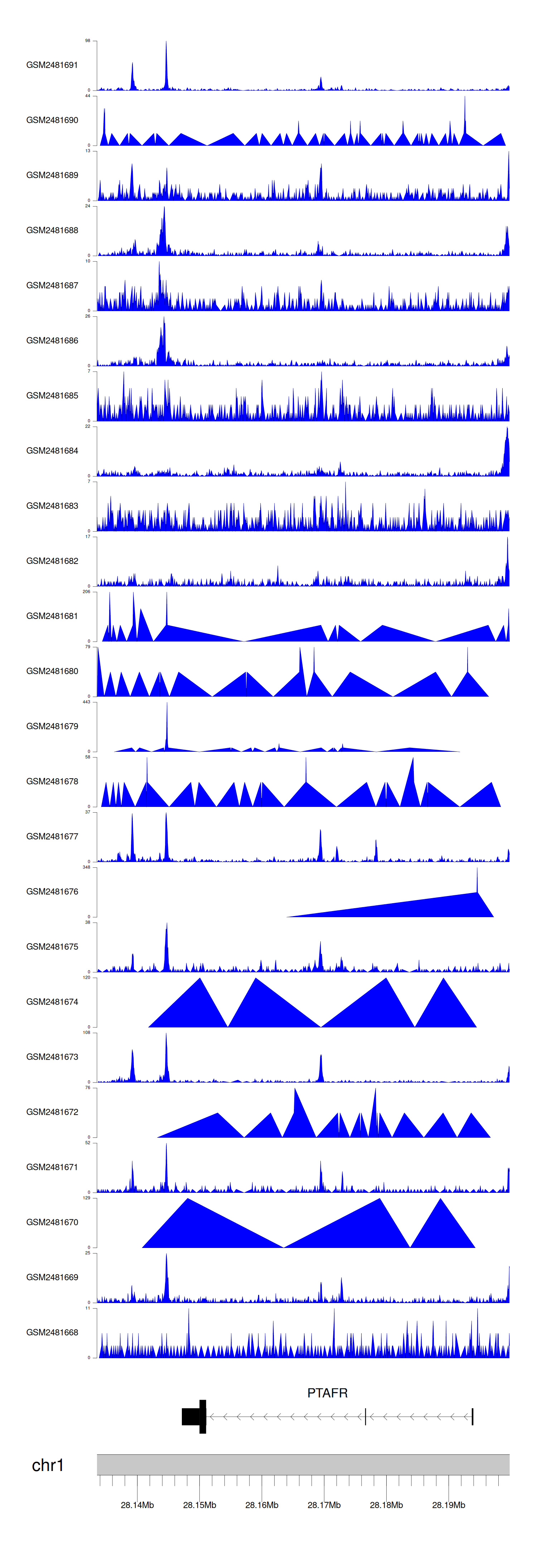 > Dataset: GSE94732 - PTAFR peak across samples