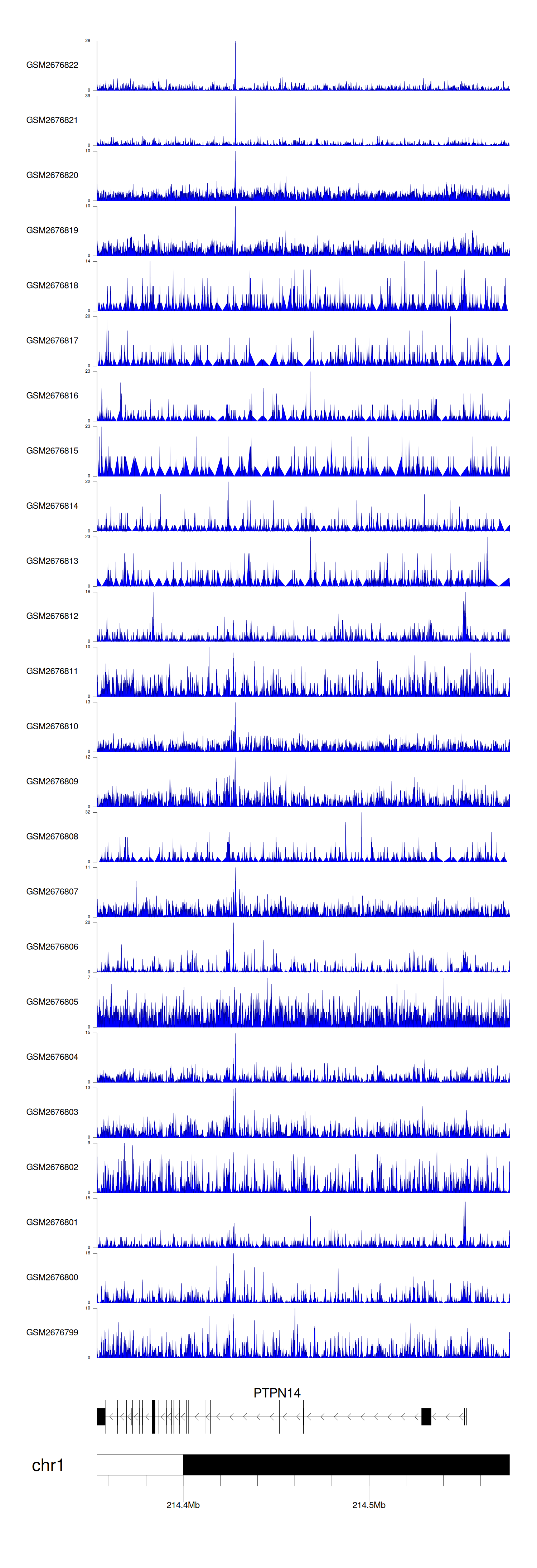 > Dataset: GSE100376 - PTPN14 peak across samples