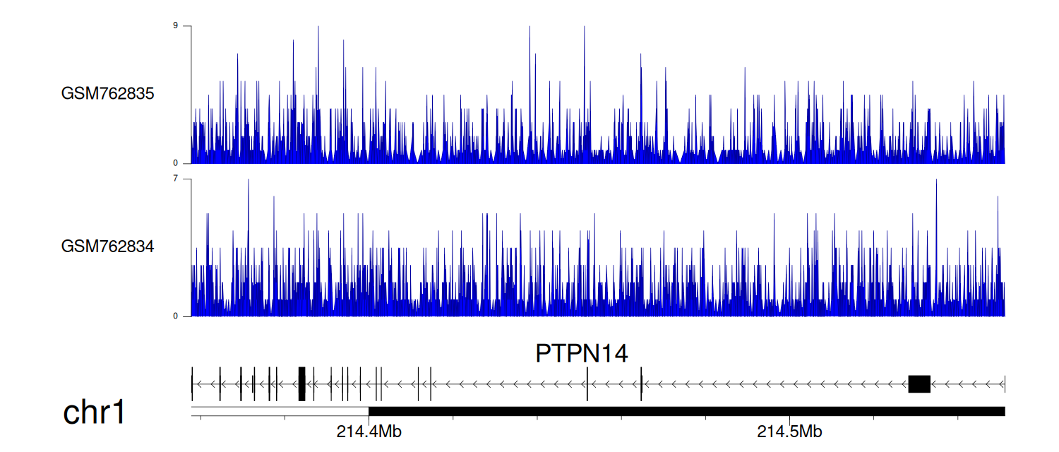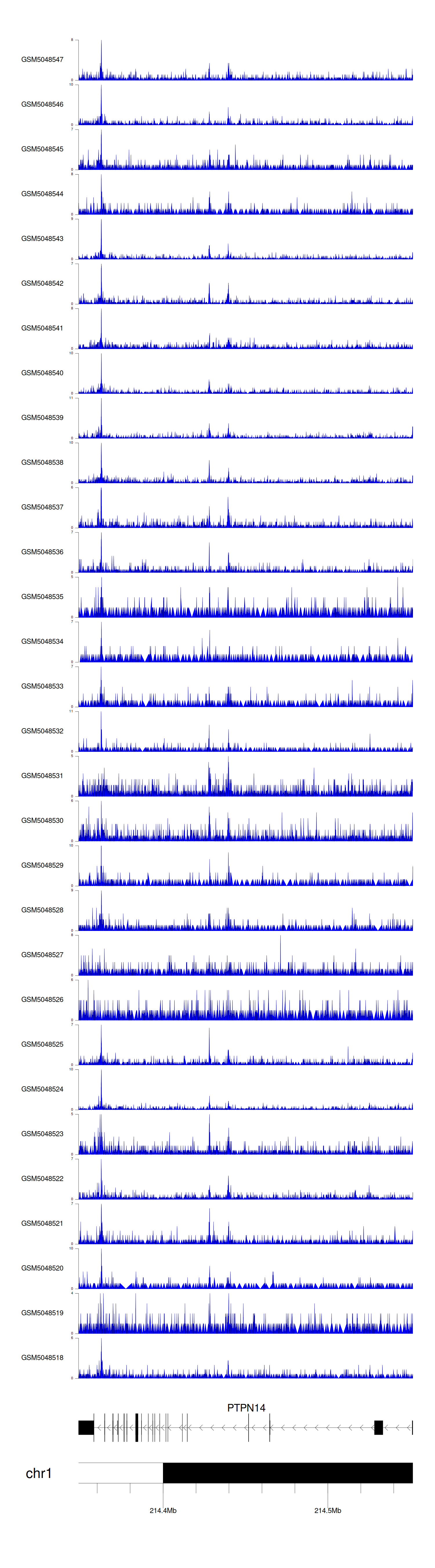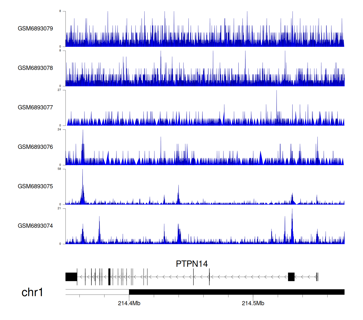 > Dataset: GSE211651 - PTPN14 peak across samples