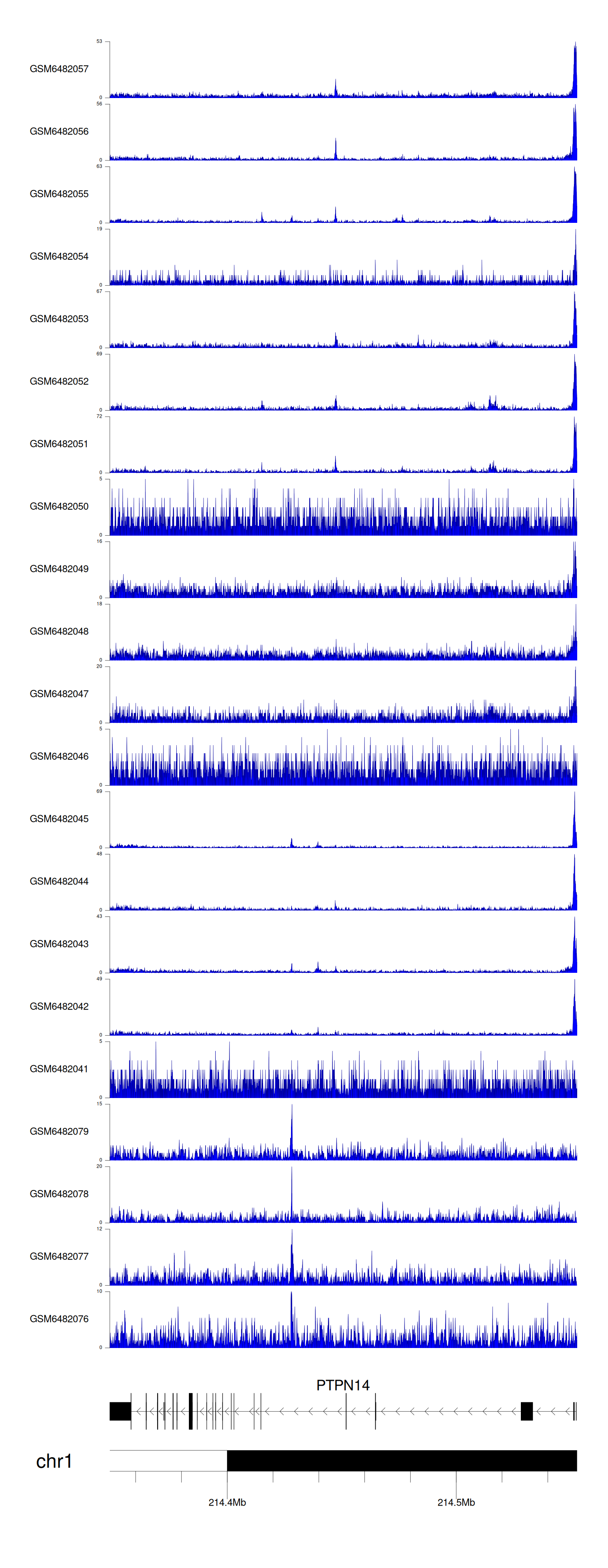 > Dataset: GSE220859 - PTPN14 peak across samples