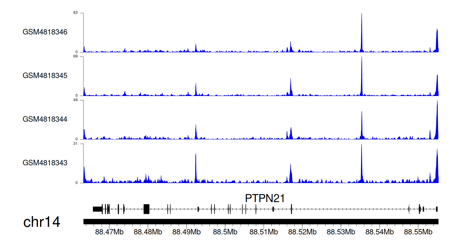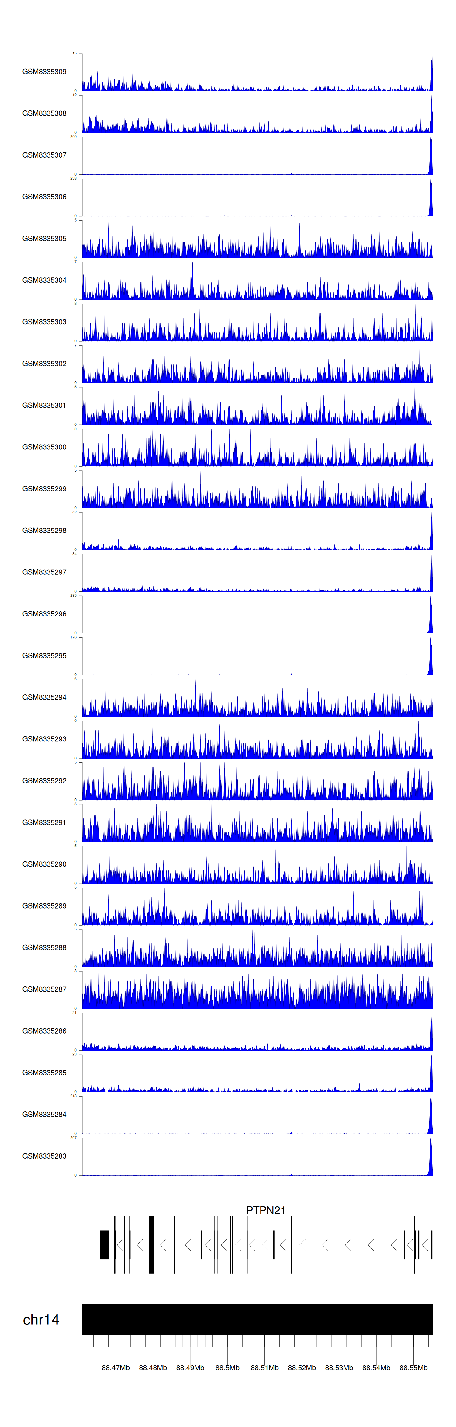 > Dataset: GSE270130 - PTPN21 peak across samples