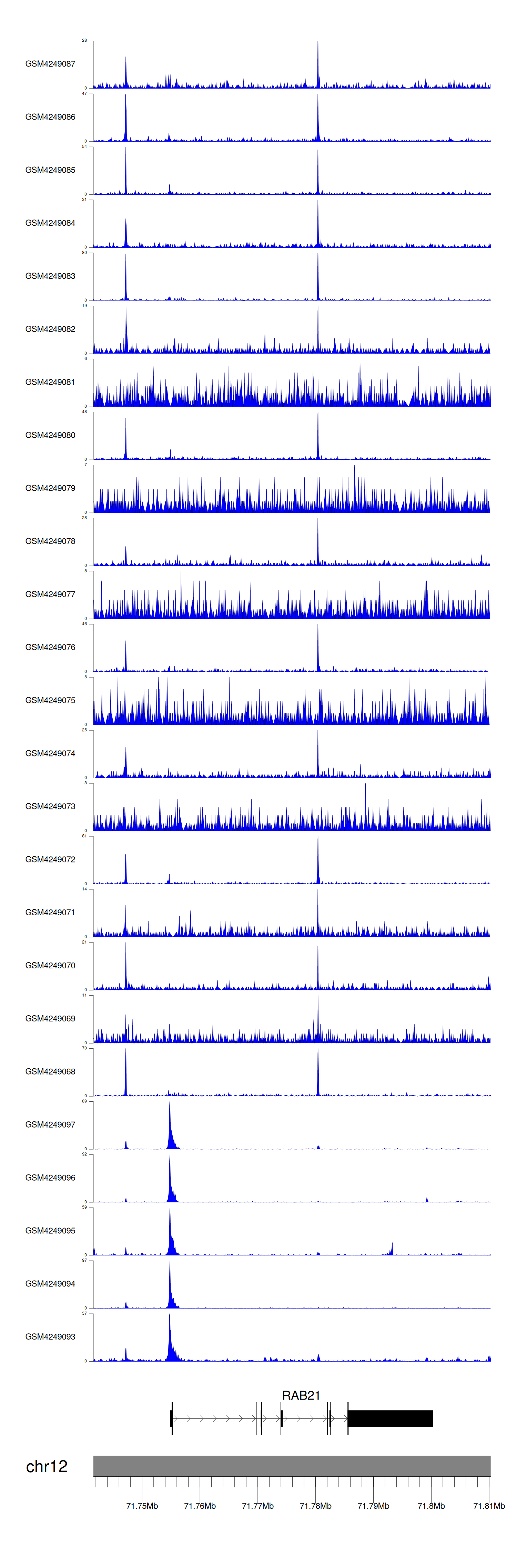 > Dataset: GSE143026 - RAB21 peak across samples
