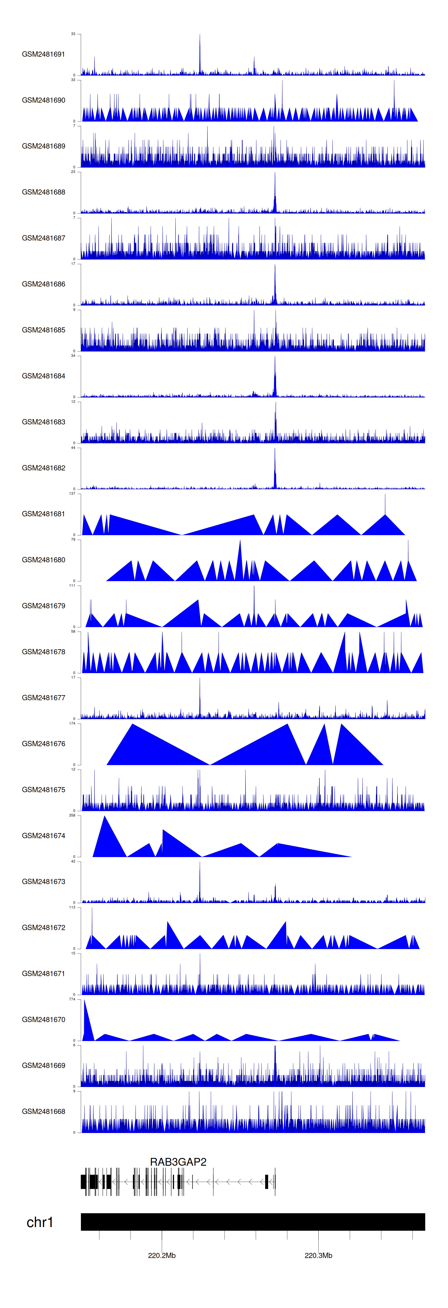 > Dataset: GSE94732 - RAB3GAP2 peak across samples
