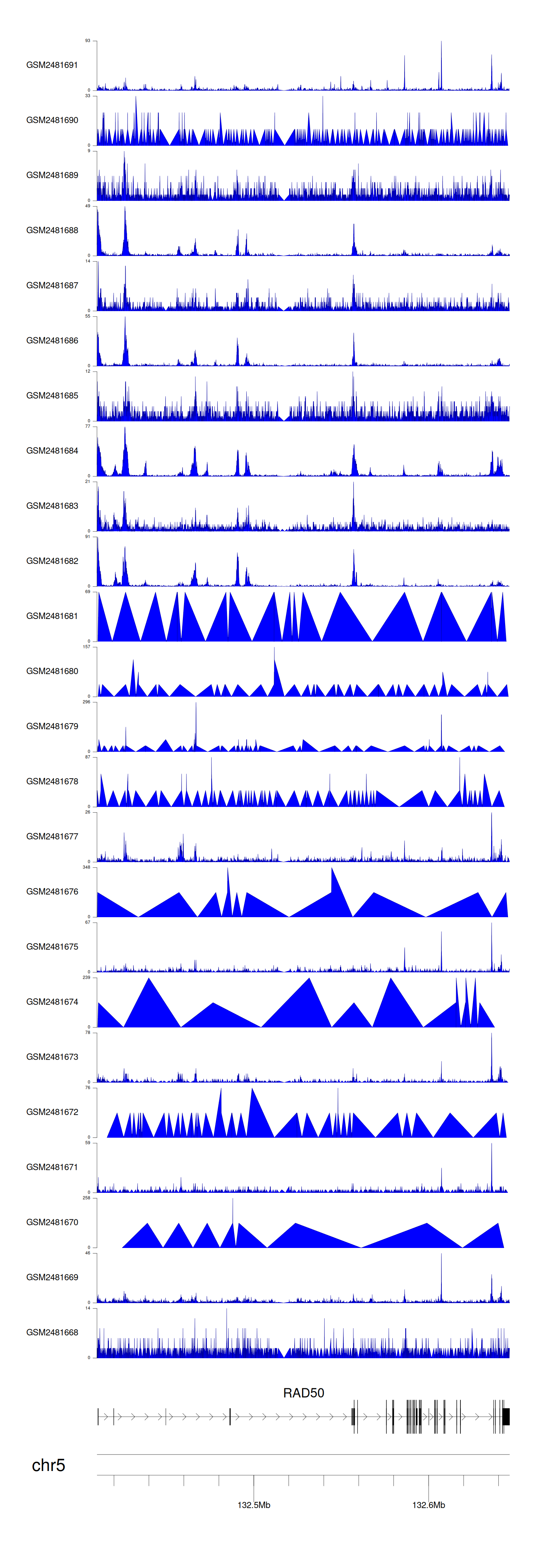 The protein encoded by this gene is highly similar to Saccharomyces cerevisiae Rad50, a protein involved in DNA double-strand break repair. This protein forms a complex with MRE11 and NBS1. The protein complex binds to DNA and displays numerous enzymatic activities that are required for nonhomologous joining of DNA ends. This protein, cooperating with its partners, is important for DNA double-strand break repair, cell cycle checkpoint activation, telomere maintenance, and meiotic recombination. Knockout studies of the mouse homolog suggest this gene is essential for cell growth and viability. Mutations in this gene are the cause of Nijmegen breakage syndrome-like disorder.[provided by RefSeq, Apr 2010] |