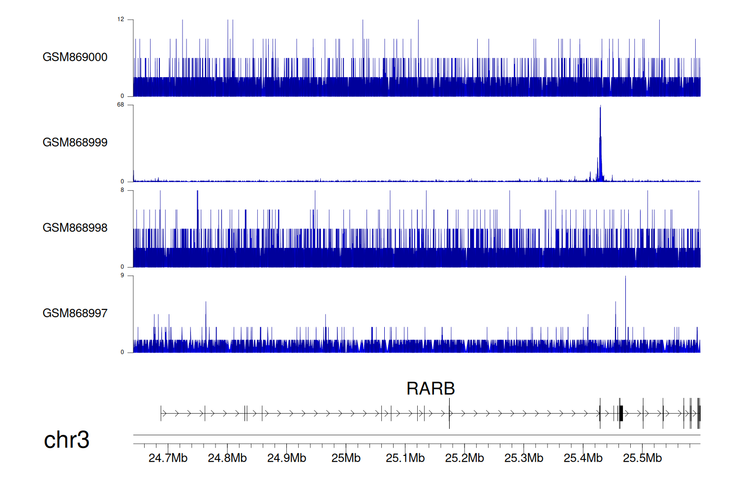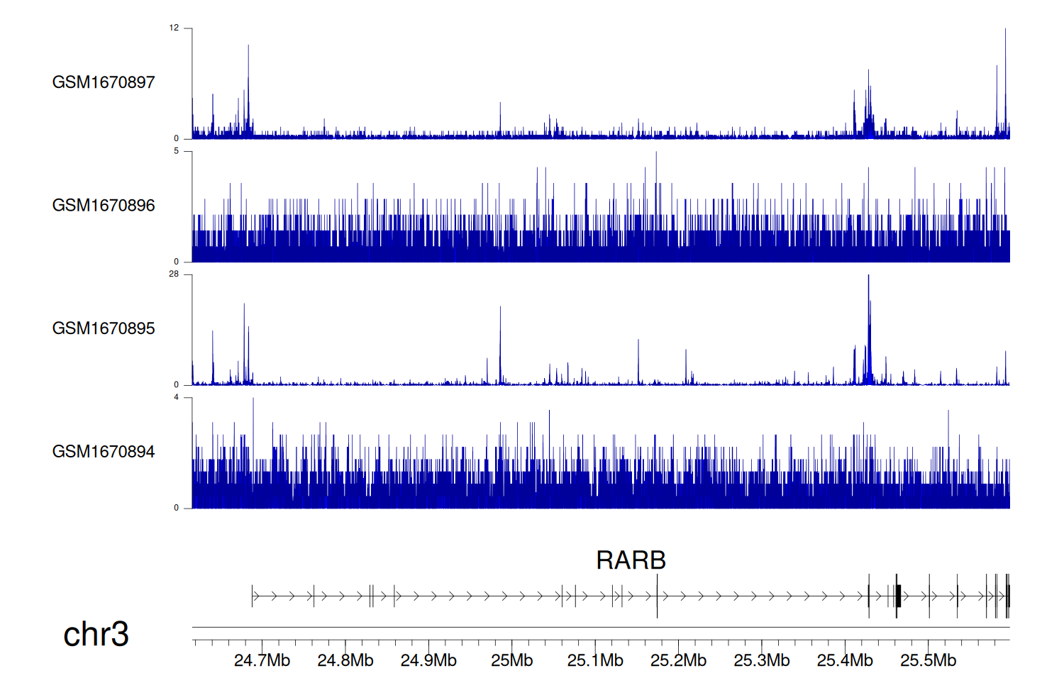 This gene encodes retinoic acid receptor beta, a member of the thyroid-steroid hormone receptor superfamily of nuclear transcriptional regulators. This receptor localizes to the cytoplasm and to subnuclear compartments. It binds retinoic acid, the biologically active form of vitamin A which mediates cellular signalling in embryonic morphogenesis, cell growth and differentiation. It is thought that this protein limits growth of many cell types by regulating gene expression. The gene was first identified in a hepatocellular carcinoma where it flanks a hepatitis B virus integration site. Alternate promoter usage and differential splicing result in multiple transcript variants. [provided by RefSeq, Mar 2014] |