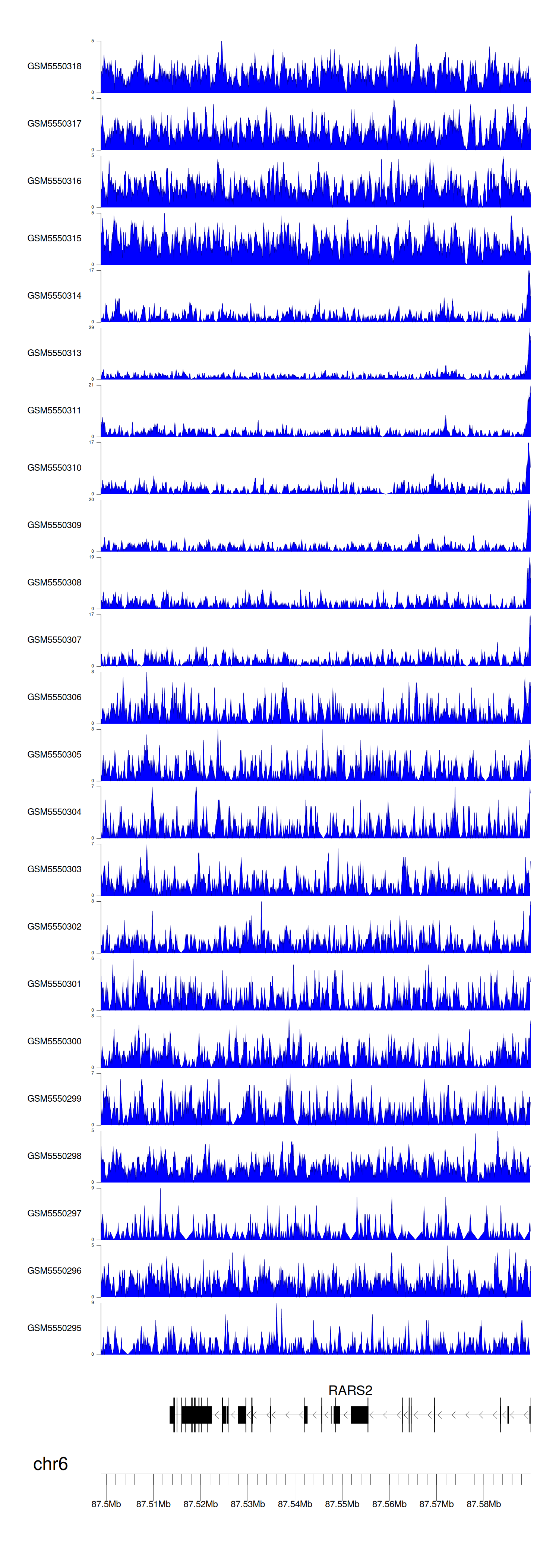 > Dataset: GSE143026 - RARS2 peak across samples
